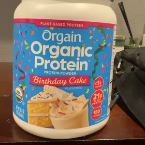 Orgain Organic Protein Plant Based Protein Powder - Birthday Cake Flavor, 21g Plant Protein, <1g Sugar, USDA Certified Organic, Edible Supplement for Fitness Endurance