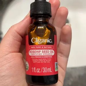 This Rosehip oil is wonderful it makes my skin glow and feels super moisturizered. I also love it in my hair it make my hair shine all day long, just a few drops works wonderfully for frizzy hair. I'm in love with this Rosehip oil.