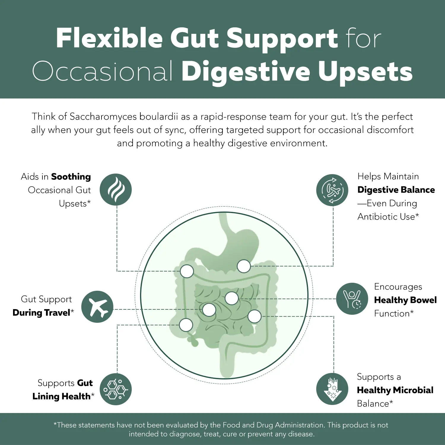 ·Thrive in Harsh Conditions: Highly resistant to stomach acid and bile, S. boulardii ensures effective delivery to your gut, making it a powerful ally for maintaining optimal digestive function.