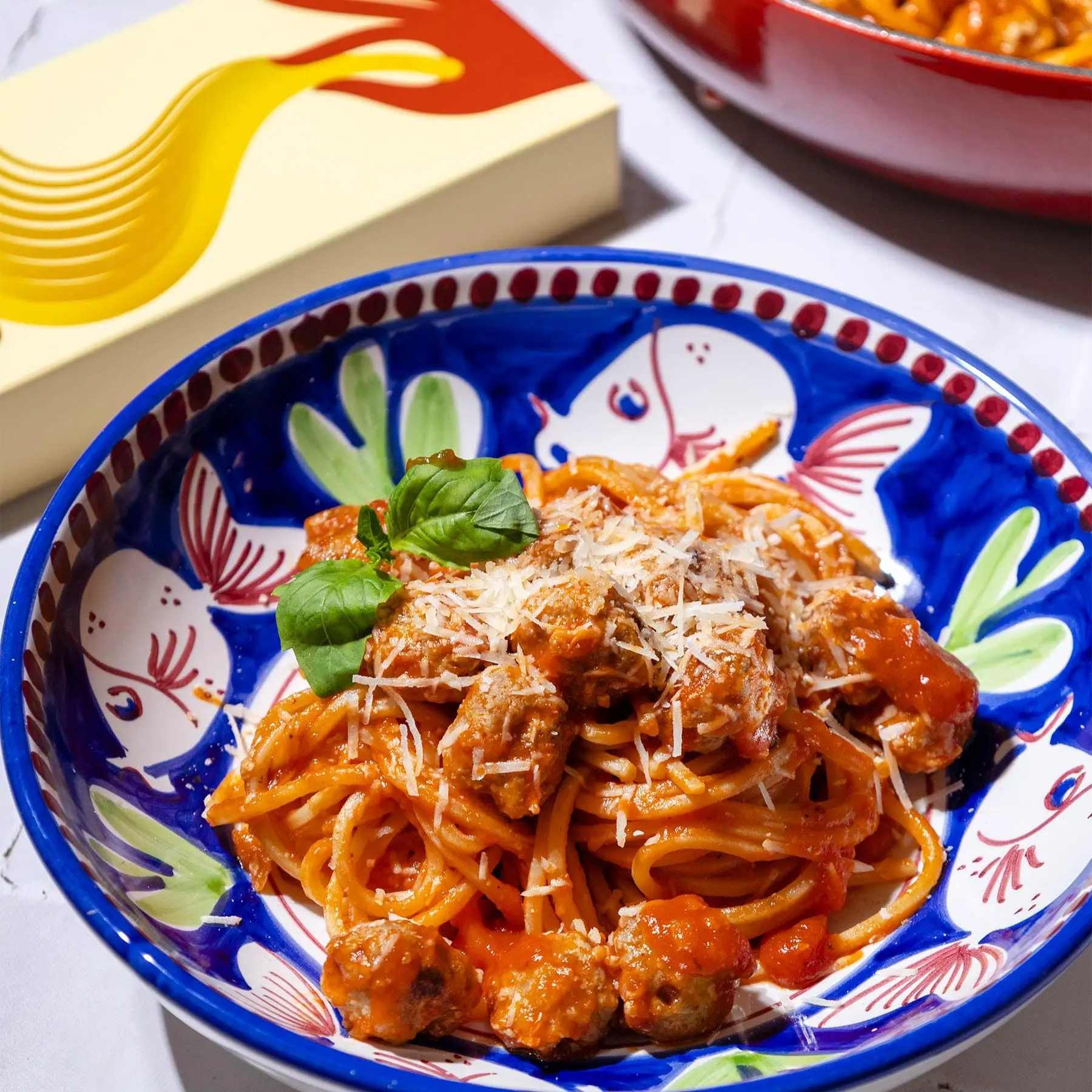 Our Giadzy organic spaghetti chitarra has an unexpected edge—literally! With squared edges, this geometric shape is an Abruzzese specialty traditionally made with a wooden frame strung tightly with wires called a