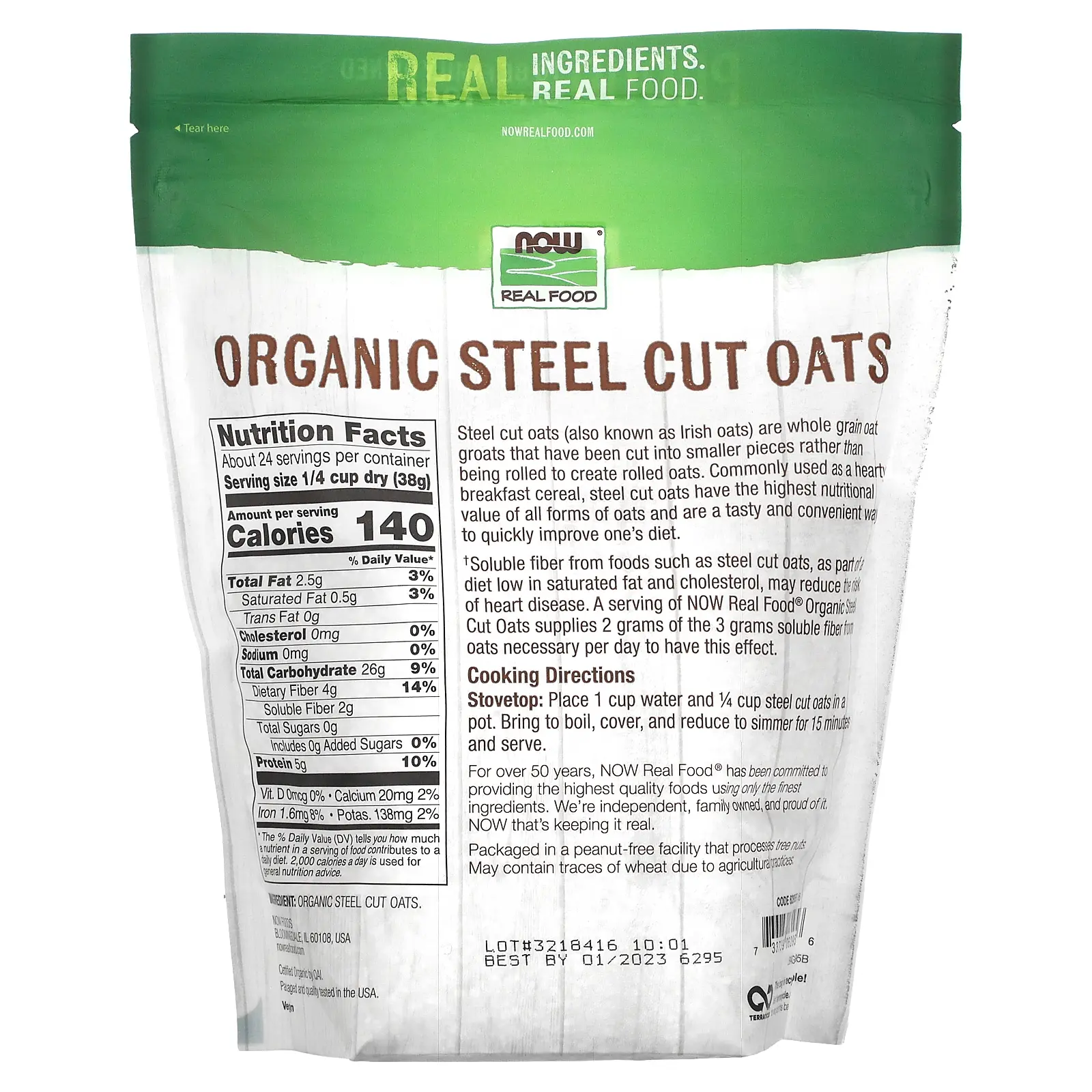 IngredientsOrganic steel cut oats.Packaged in a