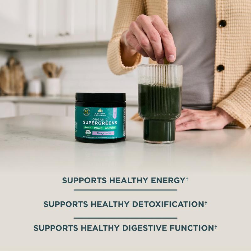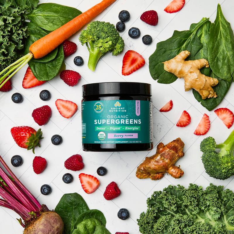 5. Organic SuperGreens | Powder Berry Flavor (12 Servings)