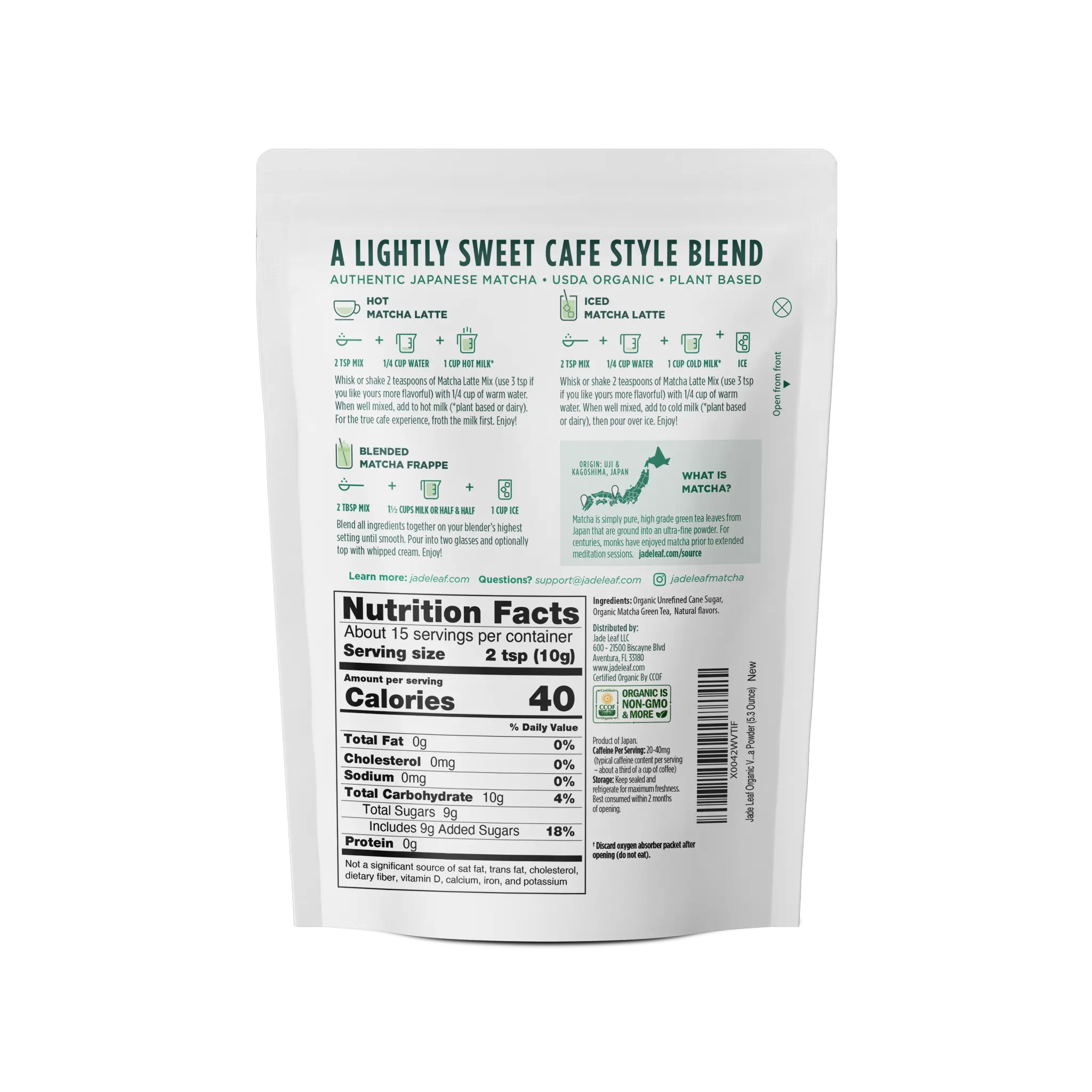 Because I like the natural flavor of matcha tea, this is not really for me. I never put sugar or any kind of sweetner in my matcha and this has 9 grams of sugar. I did like the vanilla flavor. I gave it 4 stars because it has matcha tea and the vanilla wasn't bad. I would not purhase this because I am actively trying to consume less sugar. Is there any way to make it with a lot less sugar?