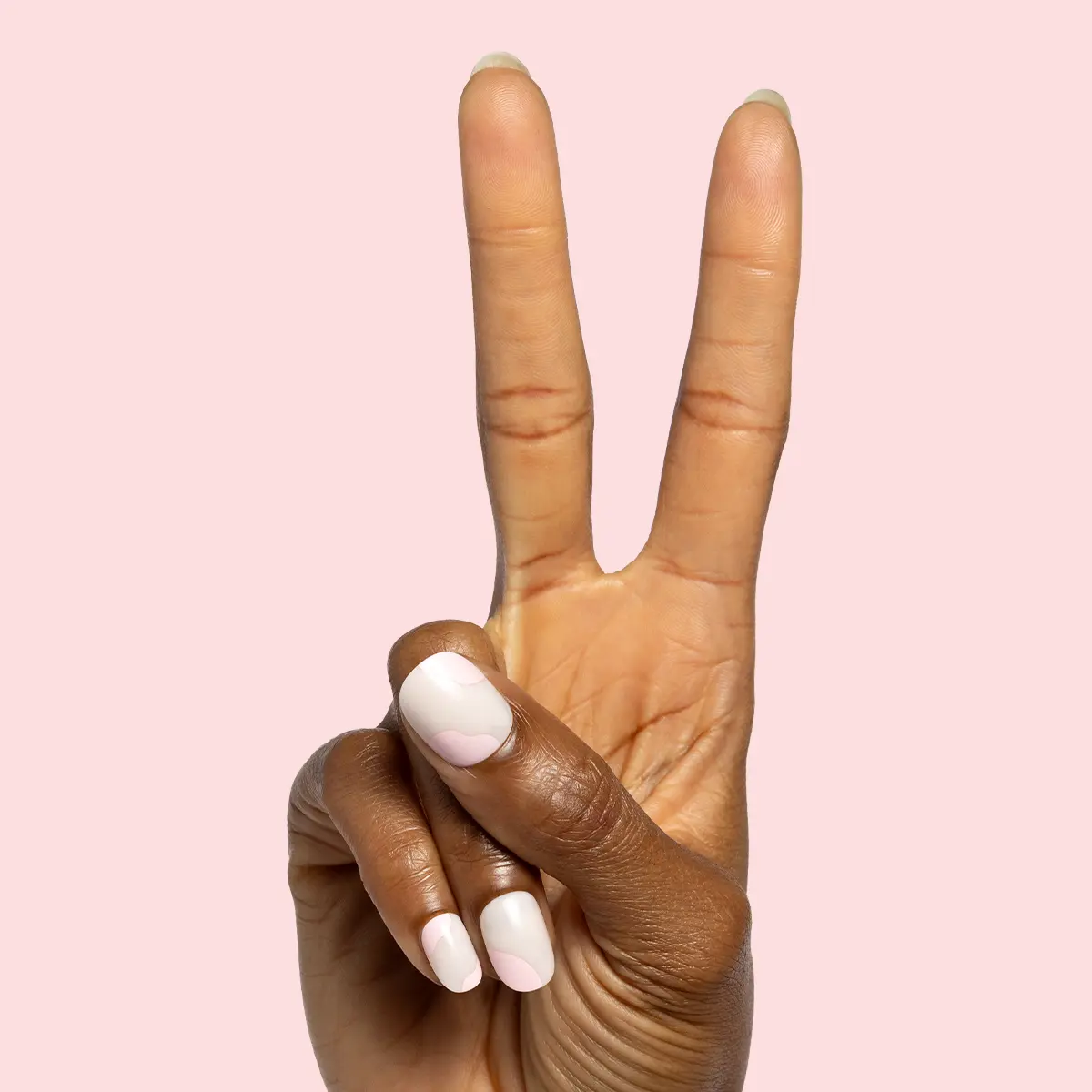 A neutral mani with swirls of light pink.“This is one of those hand painted designs that screams I just walked out of a salon. Press-ons for the win!” XO SGT