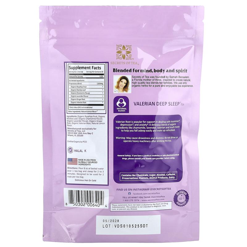 5. Secrets of Tea Organic Valerian Deep Sleep™ Tea, Caffeine Free, 20 Tea Bags, 1.4 oz (40 g)