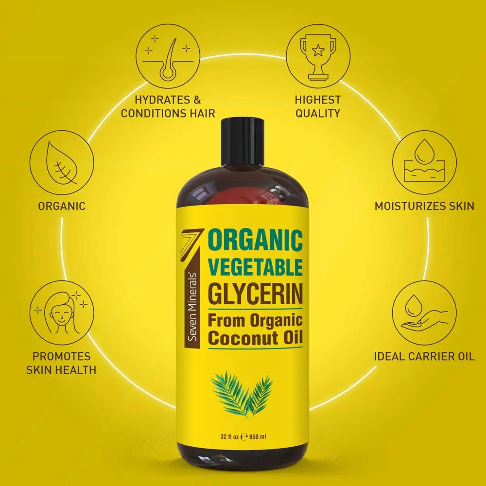 5. Seven Minerals, Organic Vegetable Glycerin - Big 32 fl oz Bottle - No Palm Oil, Made with Organic Coconut Oil - Therapeutical Grade Glycerine for DIYs - Hair, Nails & Skin Moisturizer - Non-Gmo
