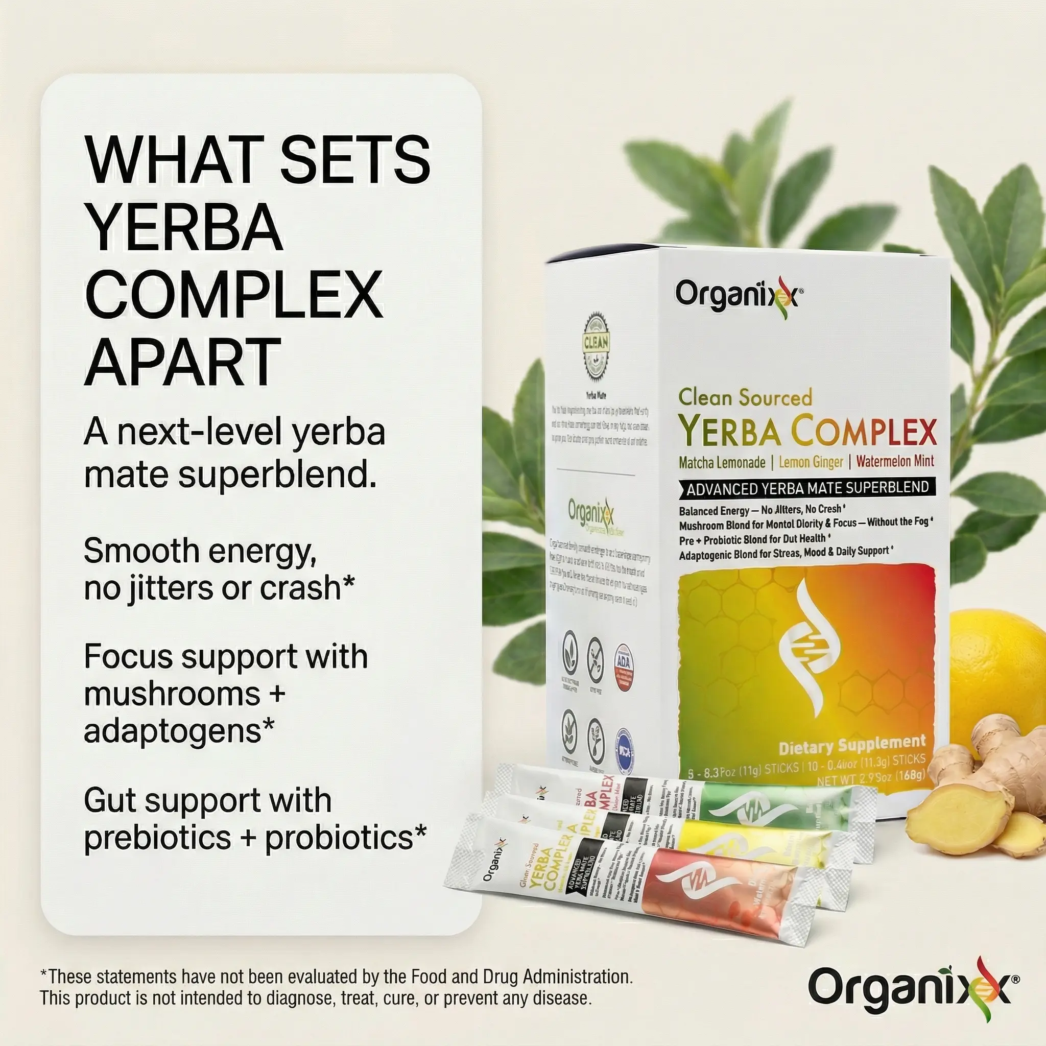 Organixx Clean Sourced Yerba Complex Drink Mix – Yerba Mate Superblend for Energy, Digestion & Daily Vitality – 100mg Caffeine