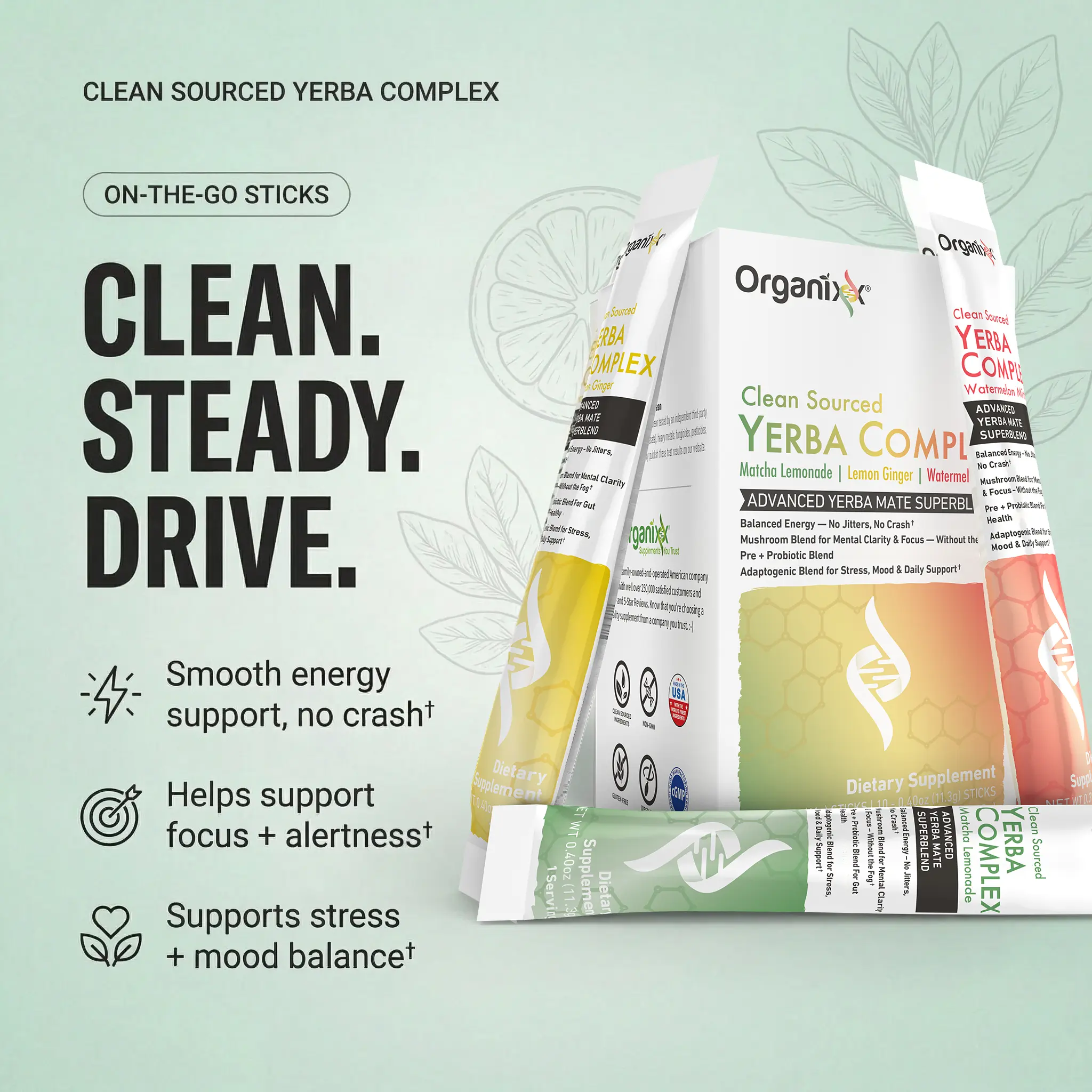 ·Refreshing Flavors, Smooth Finish Available in Watermelon Mint, Matcha Lemonade, and Lemon Ginger—or choose the Variety Pack to try them all. Each flavor offers a clean, balanced taste and smooth finish while delivering the same carefully developed formula.