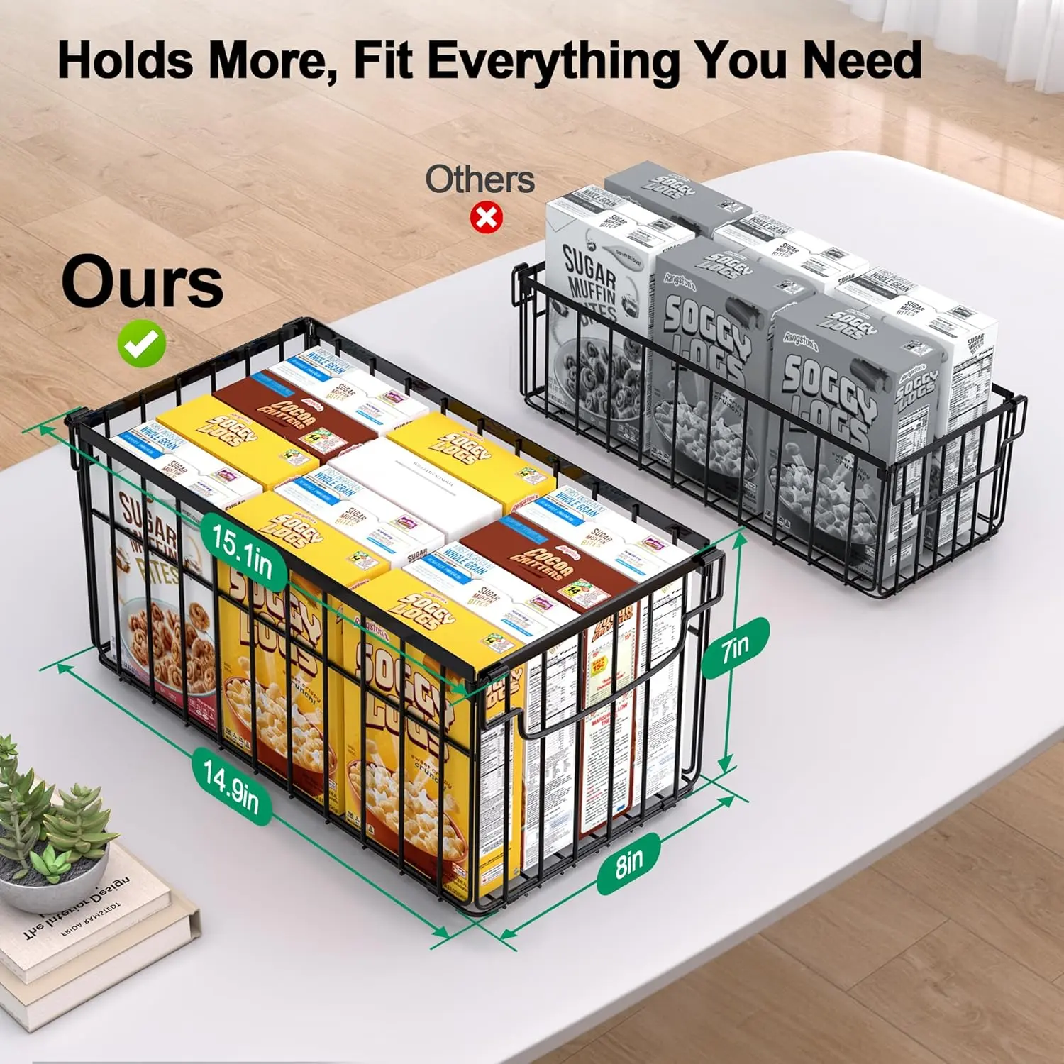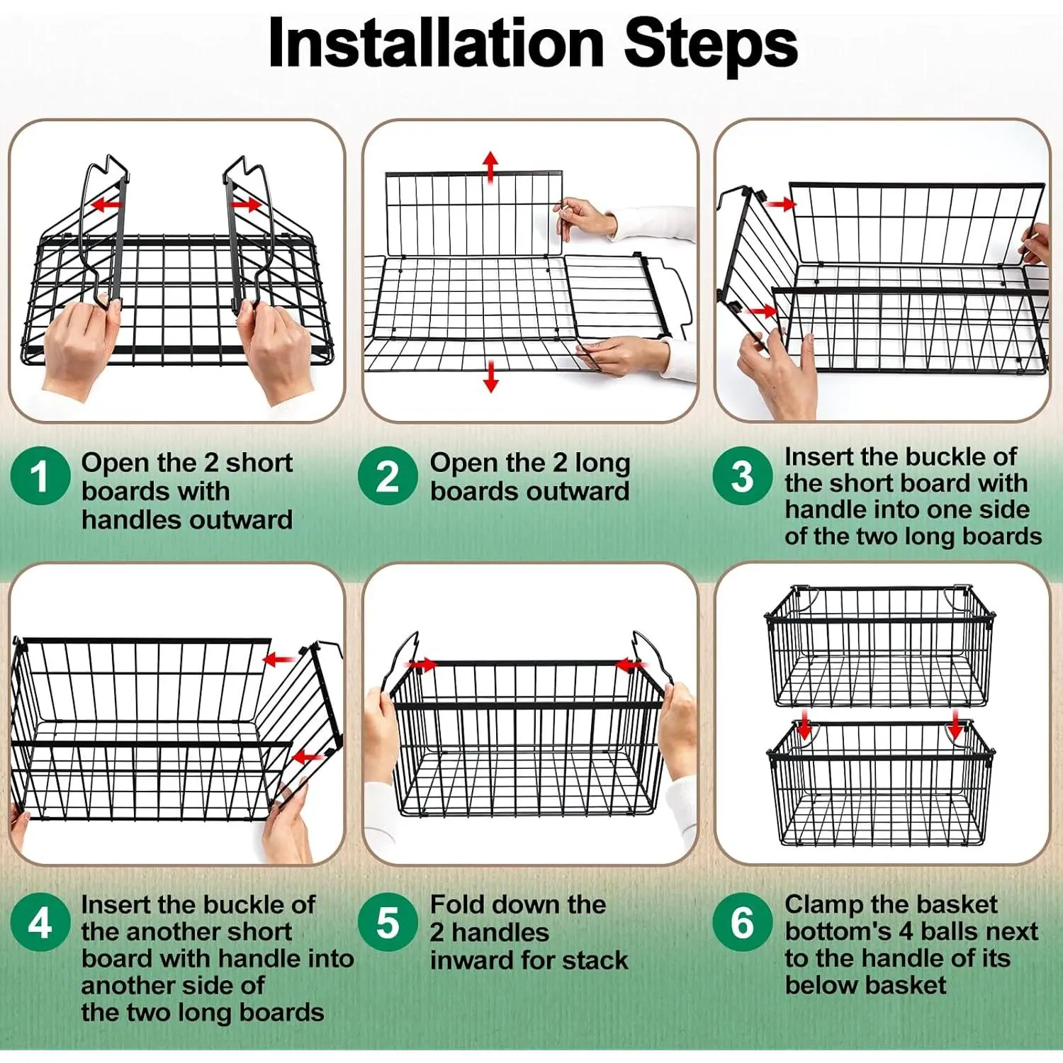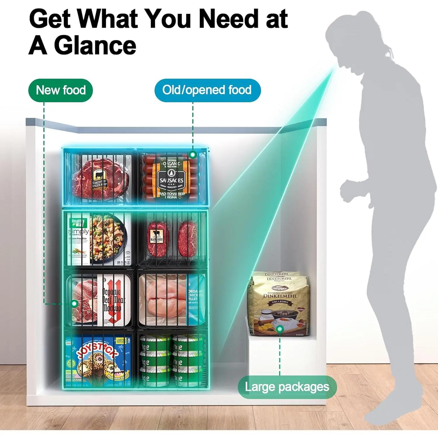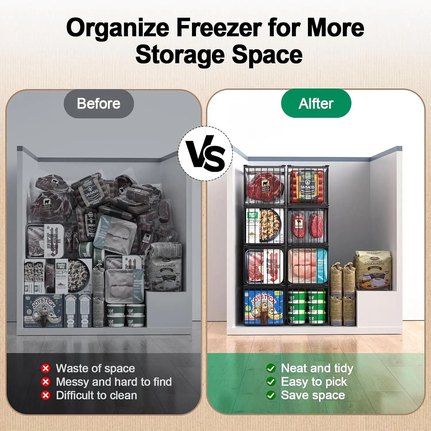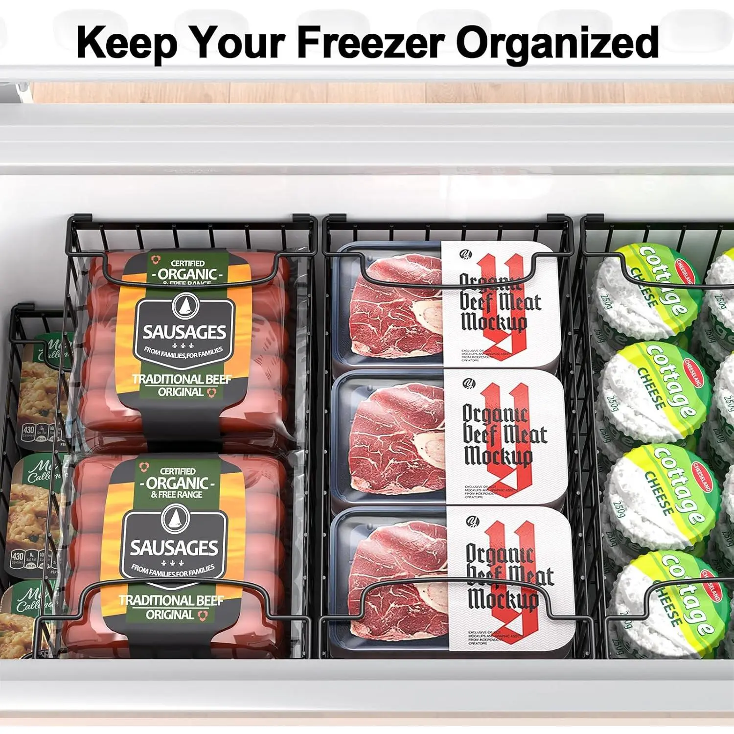 Organizer Bins, 4 Pack Stackable Deep Chest Freezer Organizer Bins, Foldable Baskets with Handles, Black Storage Container Baskets for 5/ 7 Cu.FT Deep Freezer Sort Frozen Meats
