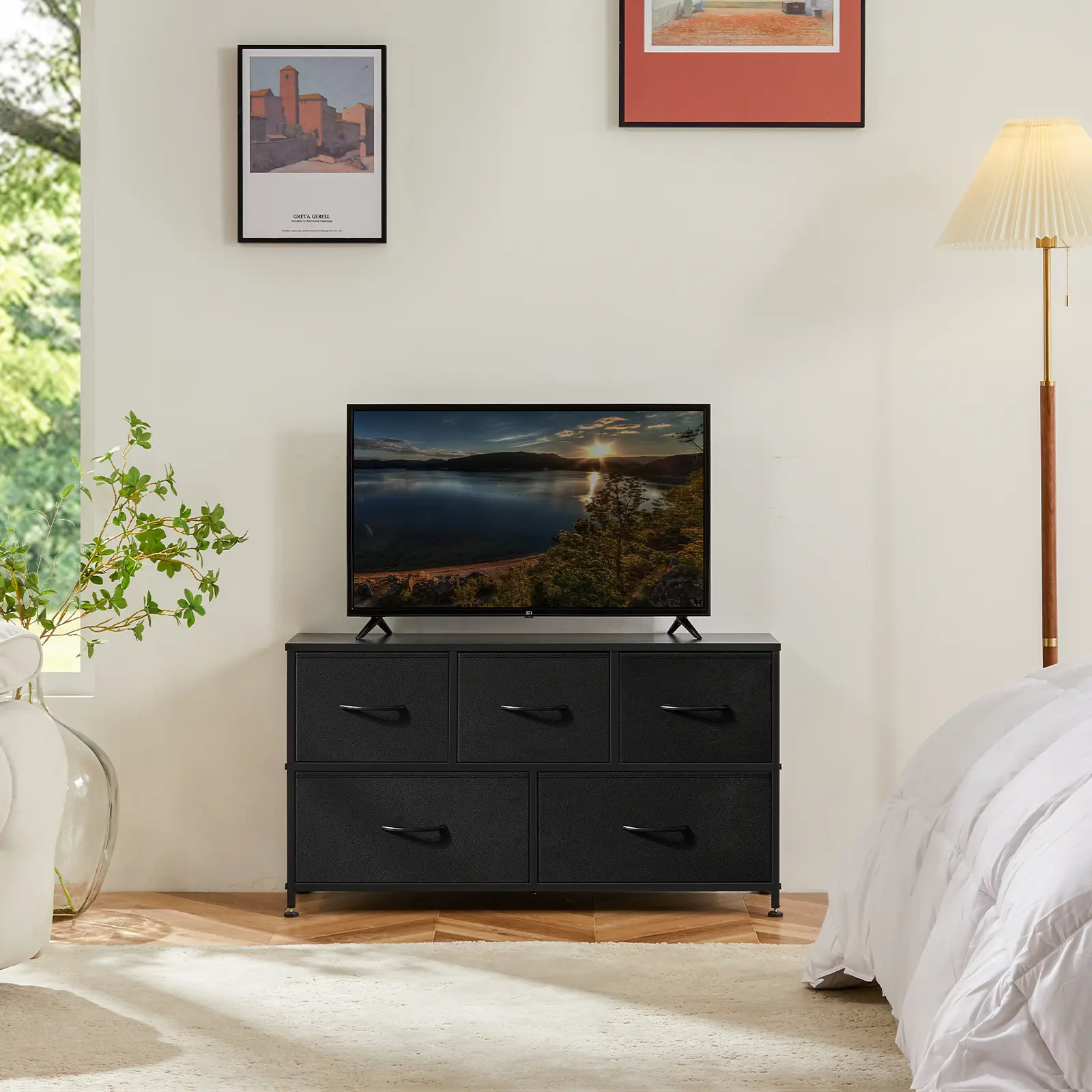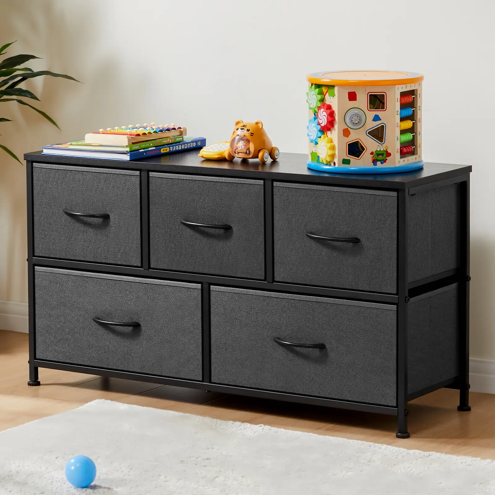 ·【Large Capacity】This black dresser offers 5 drawers provide sufficient space for organizing of daily necessities. 2 L and 3 M drawers are designed to satisfy your various storage needs. The wooden top of bedroom dresser is great for keeping the most-used items within your reach. Drawer dimensions: L (11.8" L x 11.8"W x 8.5" H) ;M(12"L x 11.4"W x 8.3" H)