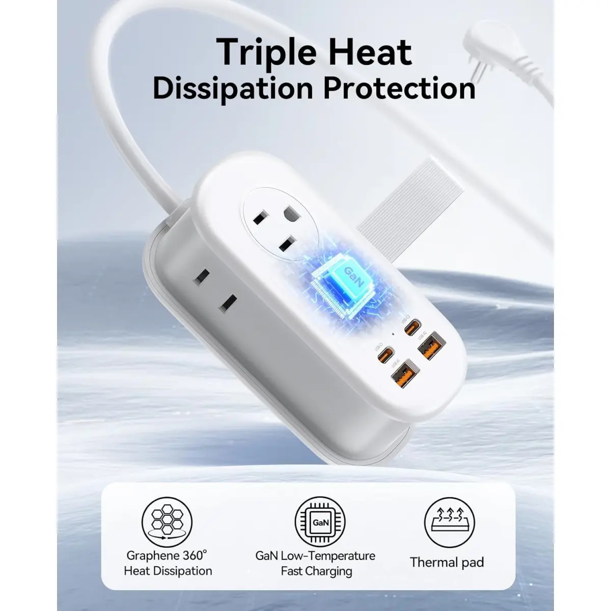 The pocket power strip uses cutting-edge GaN technology to significantly reduce energy loss and heat generation. It keeps your devices cool during fast charging, extends their lifespan, and optimizes energy use for a balance between speed and efficiency, ensuring safe and reliable charging