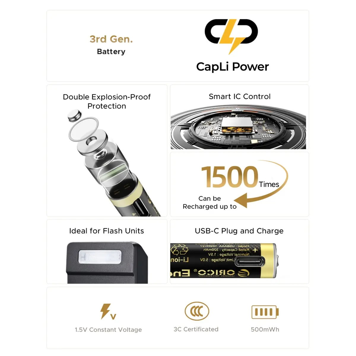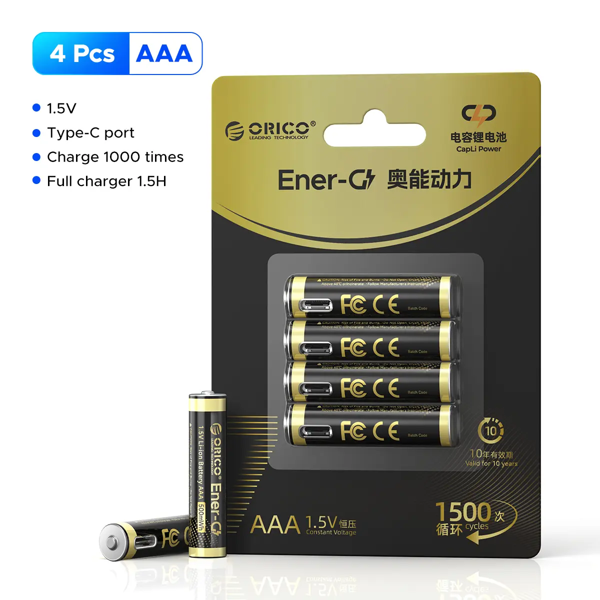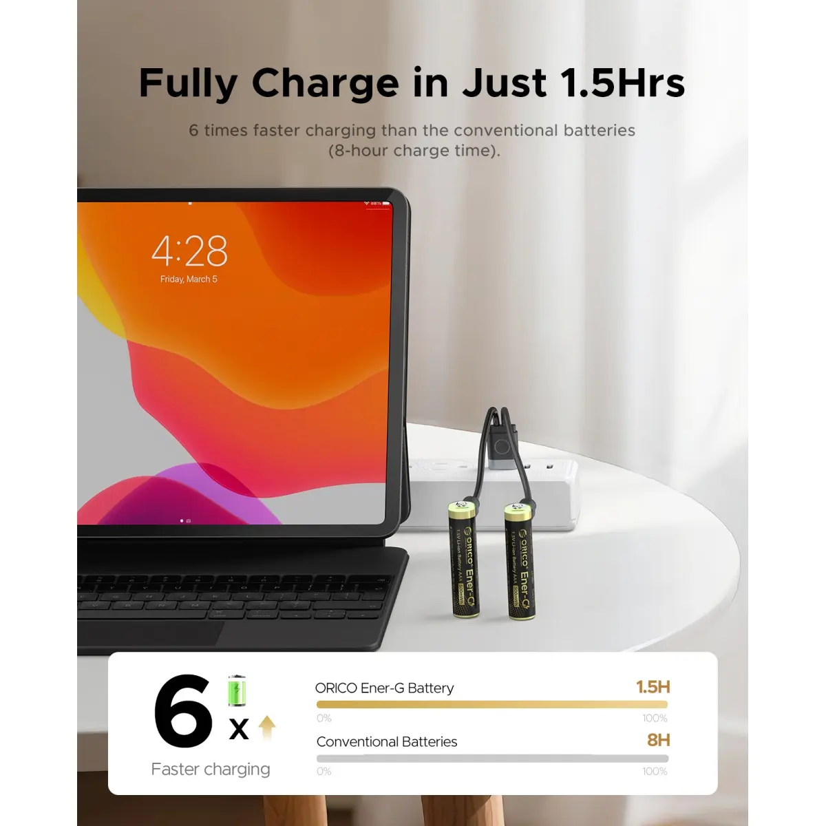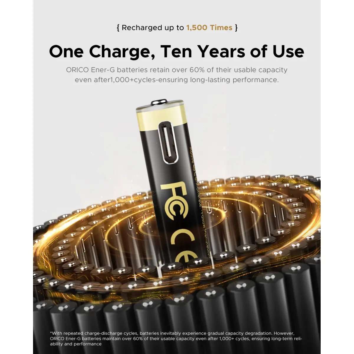 Tired of constantly buying disposable AAA batteries for your remotes and toys? ORICO's Ener-G Lithium-ion AAA rechargeable batteries are here to save the day—and the planet. With up to 1500 recharge cycles, these batteries replace hundreds of single-use ones, cutting down waste and saving money.