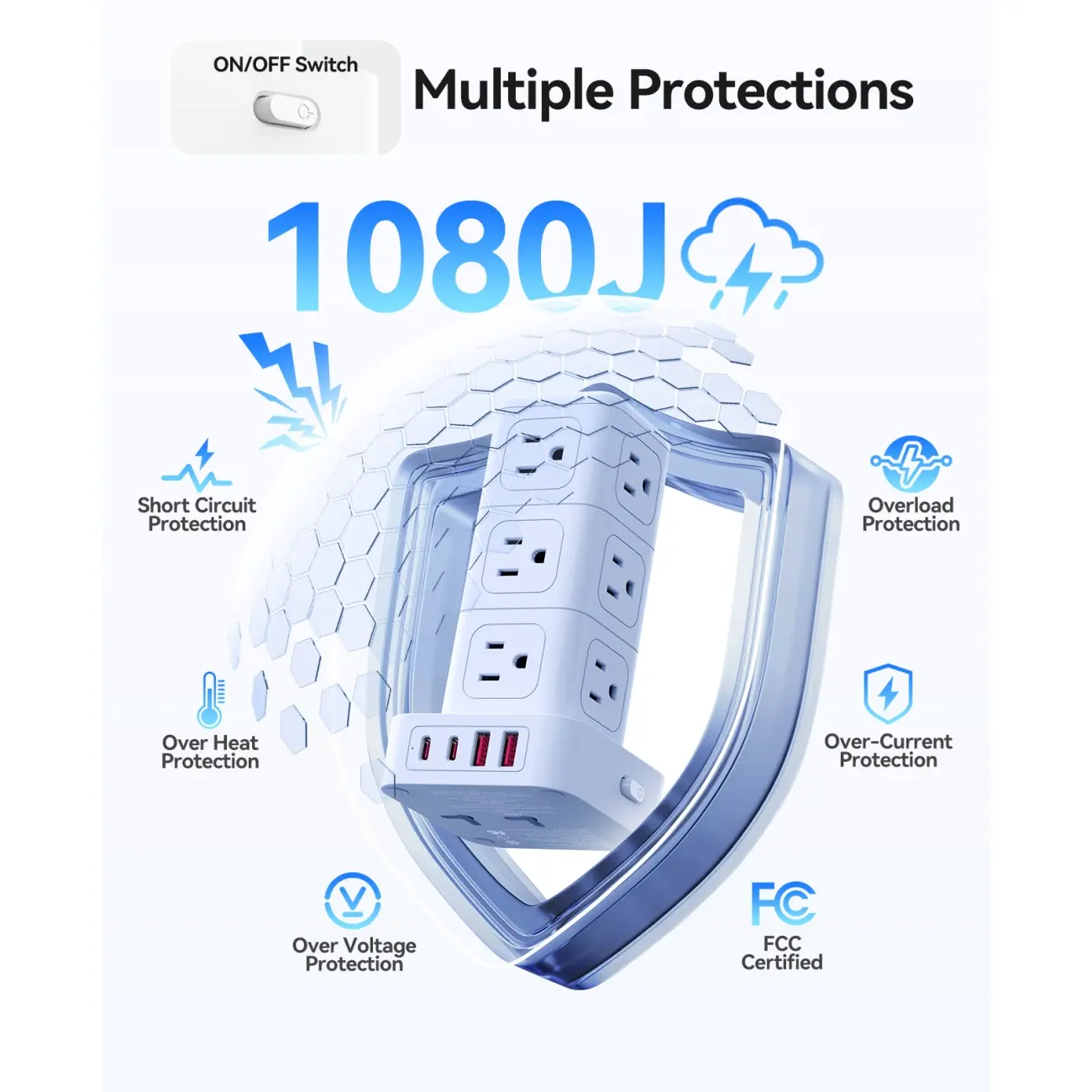 Safe and Ease of Use: This power strip features overload, short circuit, and over-current protection, with a reinforced design at the connection between the terminal base and wire ends to protect terminals from wear.Its side master switch enables convenient power control, saving energy and without constant unplugging.
