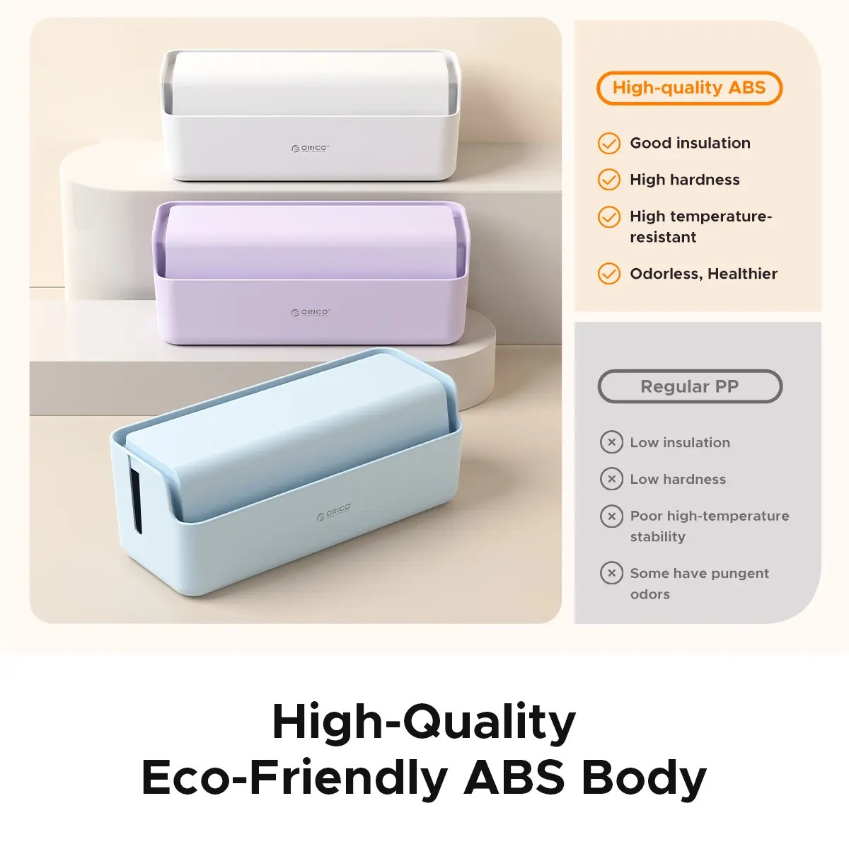 5. ORICO PowerBox Cable Organizer Box – Minimalist Desktop Cable Management, Safe Power Strip Storage for Home & Office - PB01