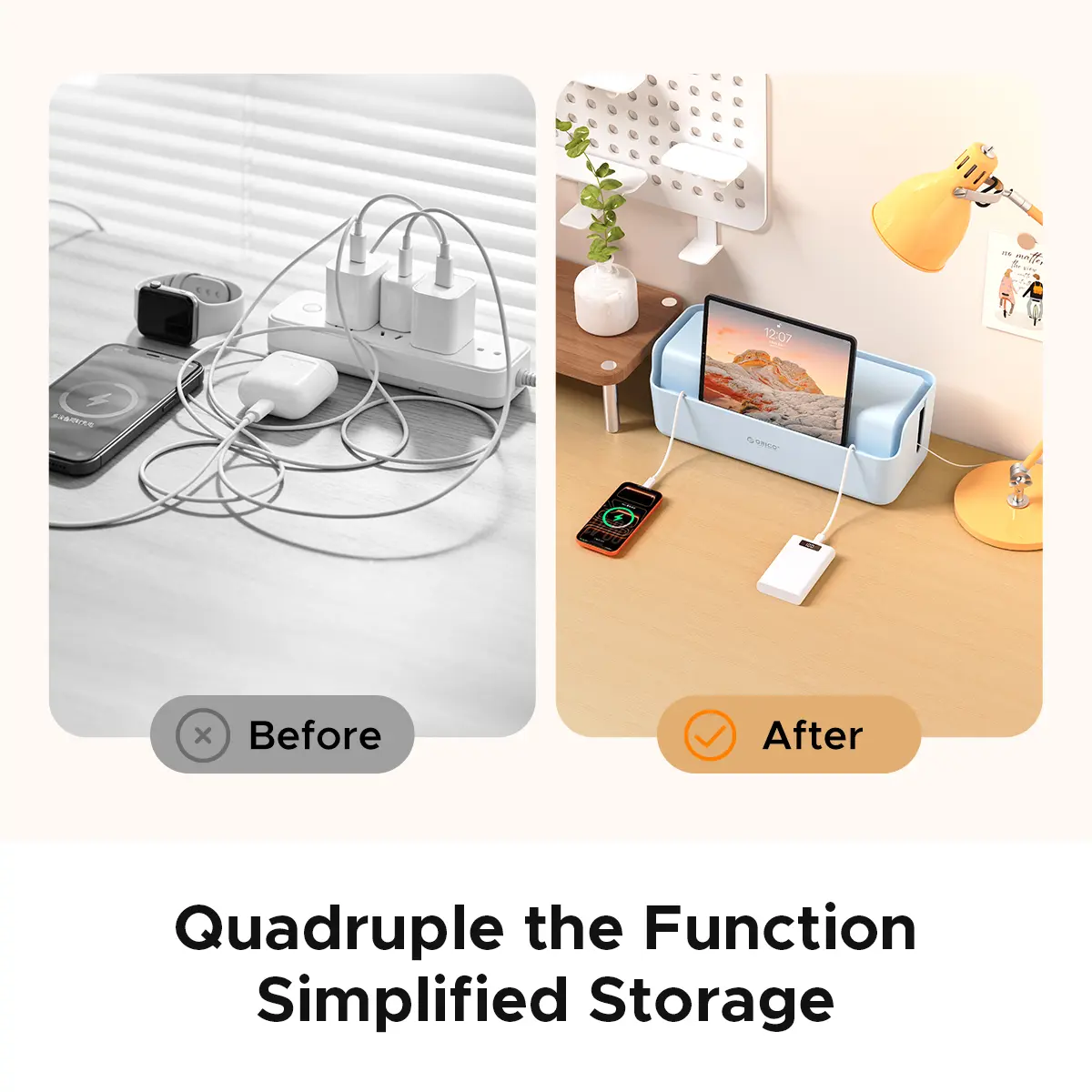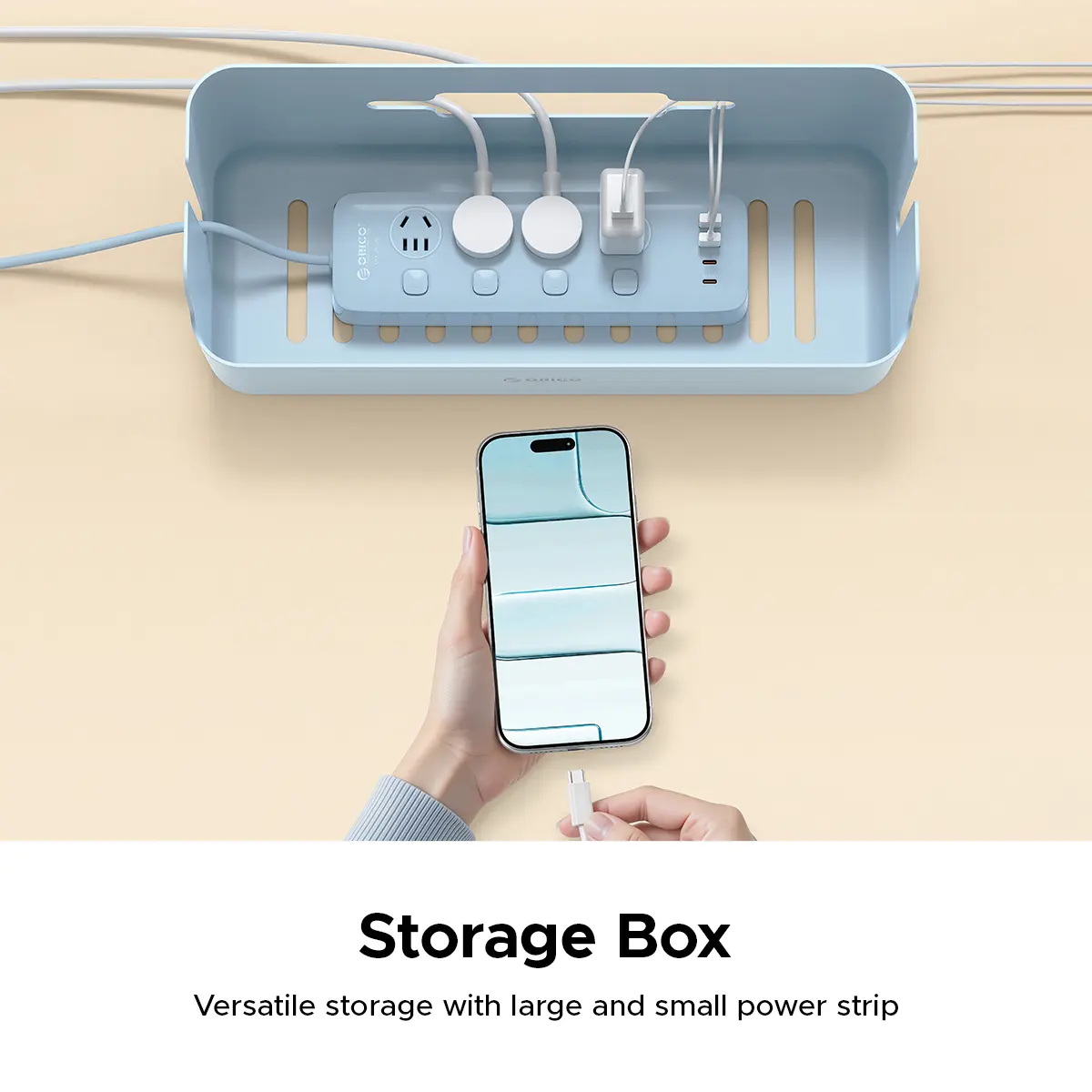 ORICO PowerBox Cable Organizer Box – Minimalist Desktop Cable Management, Safe Power Strip Storage for Home & Office - PB01