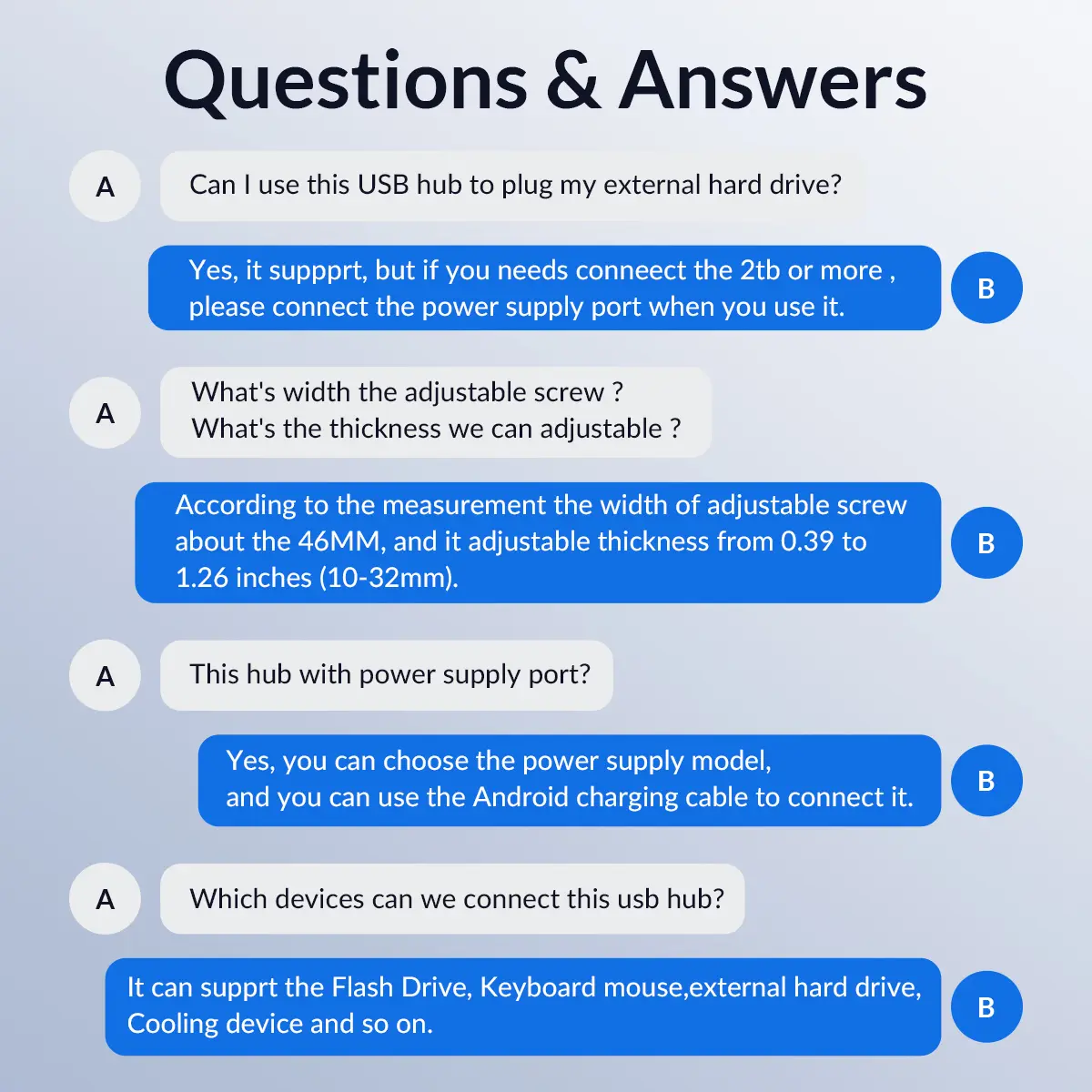 This desk USB Hub has an extra power supply port that keeps your connected devices and data safe even for high-power devices (Note:Power adapter not included)