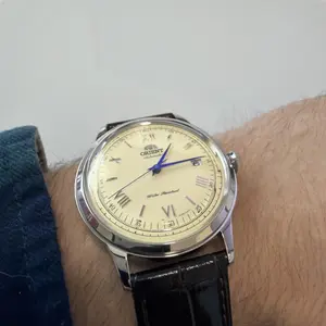 This was my first Orient watch. I've since gotten more! I love the champaign dial against the blue hands. The leather strap is great. You can be proud to wear this watch in any context, the style is timeless.