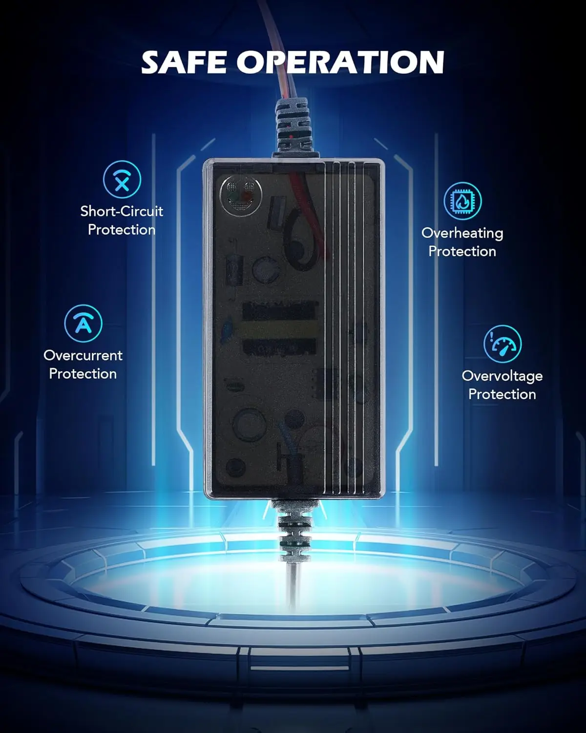 The internal circuit boards' precise engineering automatically senses and fixes any potential problems during charging; the charging indicator lights let you easily monitor the charging status of your battery