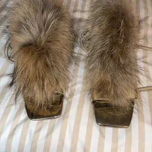 AZALEA WANG SHAINY TAN FUR SANDAL