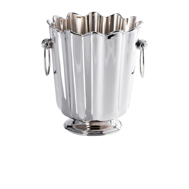 ·Crafted from gleaming brass with ribbed detailing and scalloped edges, the Orléans Wine & Champagne Bucket brings timeless opulence to every celebration