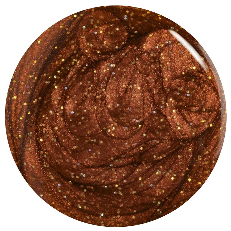 ·This nail polish features a bold brick red hue, ignited with a golden holographic shimmer. 🌟