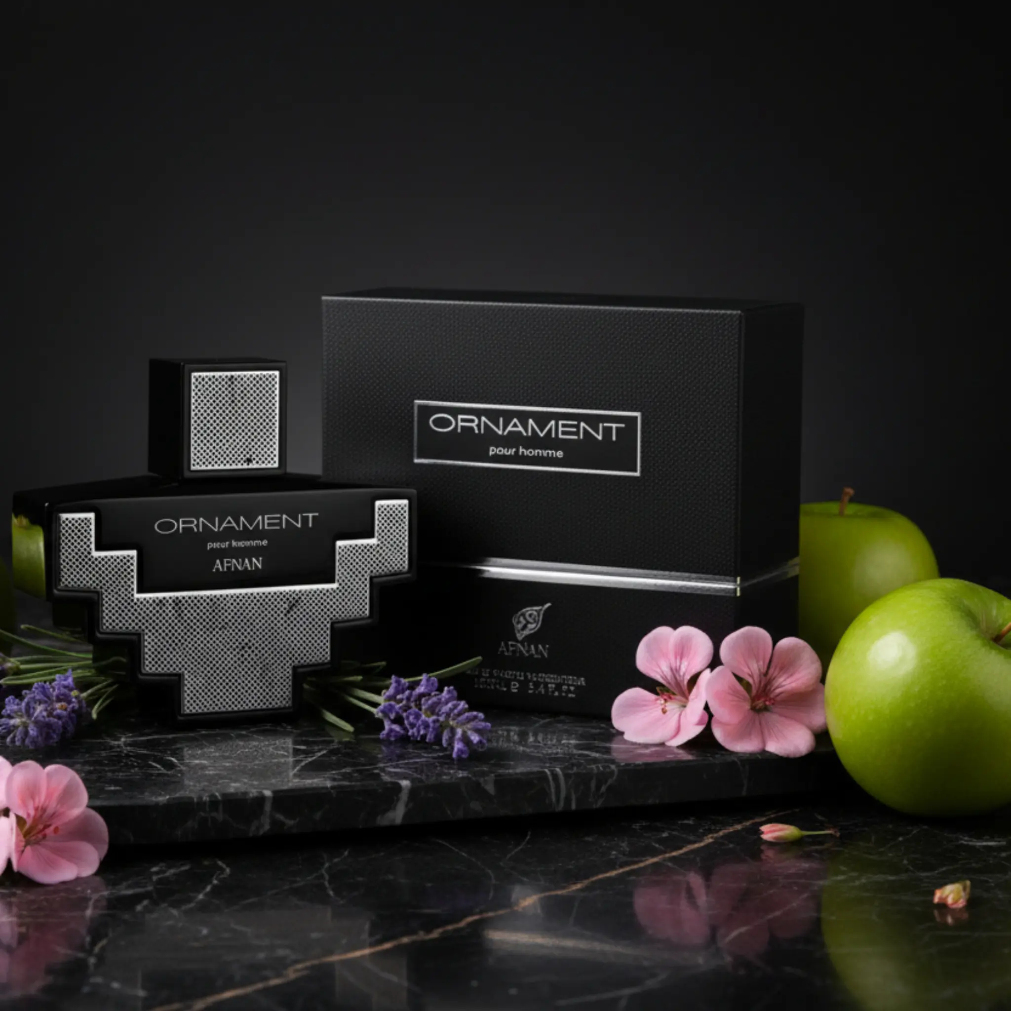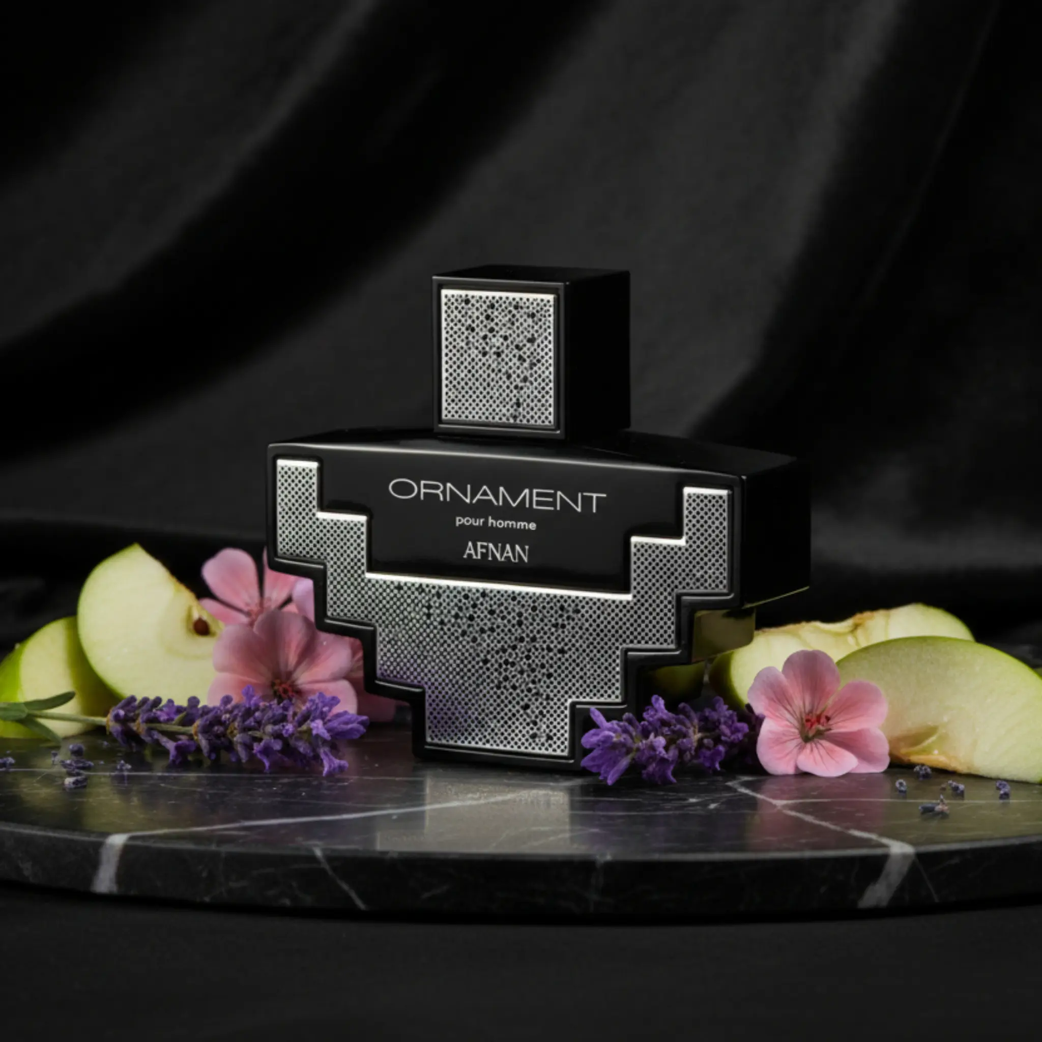 Ornament Pour Homme was launched in 2014. Top notes are Apple, Clove, Cardamom and Nutmeg; middle notes are Pepper, Saffron and Geranium; base notes are Amber, Patchouli, Sandalwood and Cedar