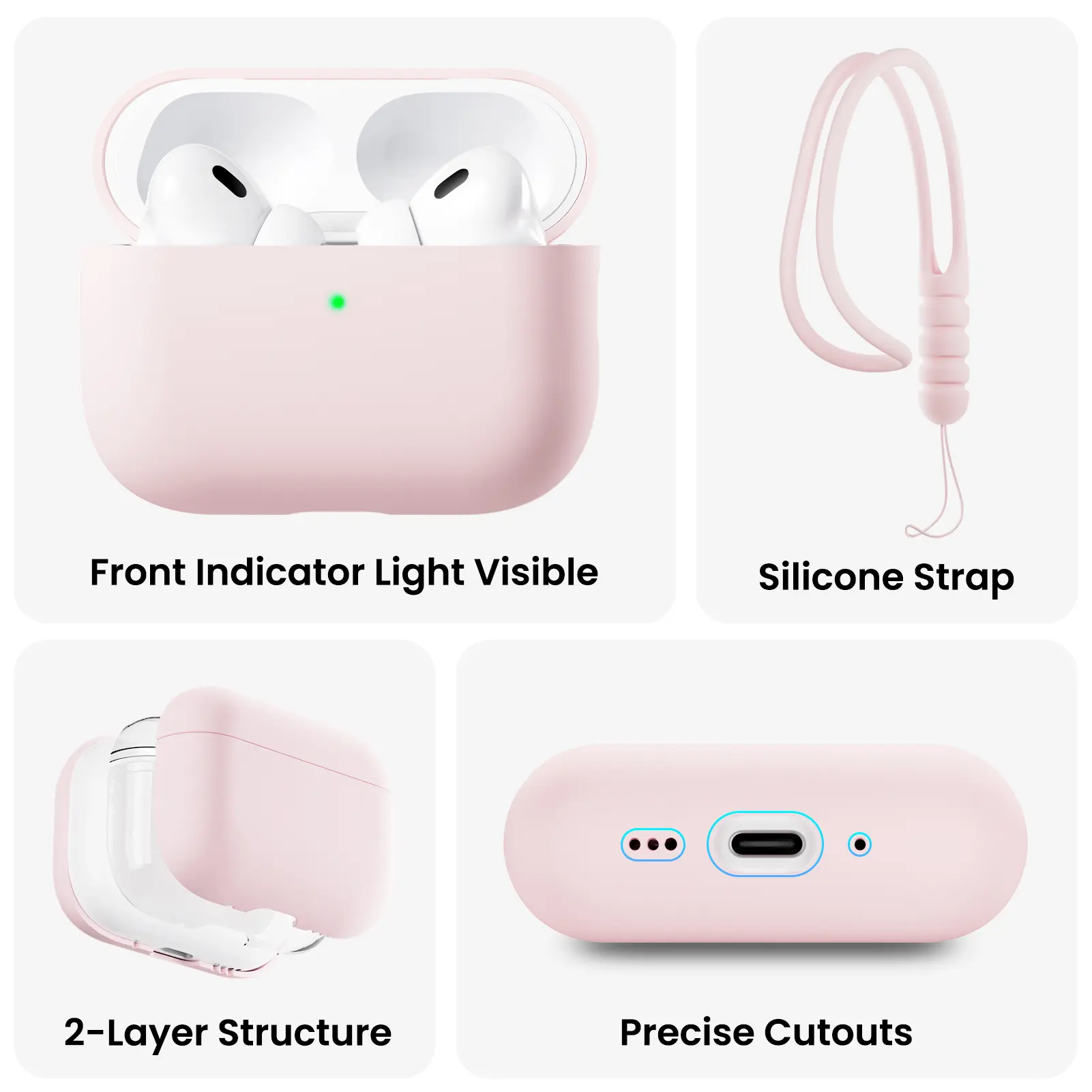 [CASE ONLY] ORNARTO Protective Soft Silicone Case for AirPods Pro 3, Pro 2, 4th Gen - Front LED Visible Skin Cover, Handheld Accessories, Compatible with AirPods 2025