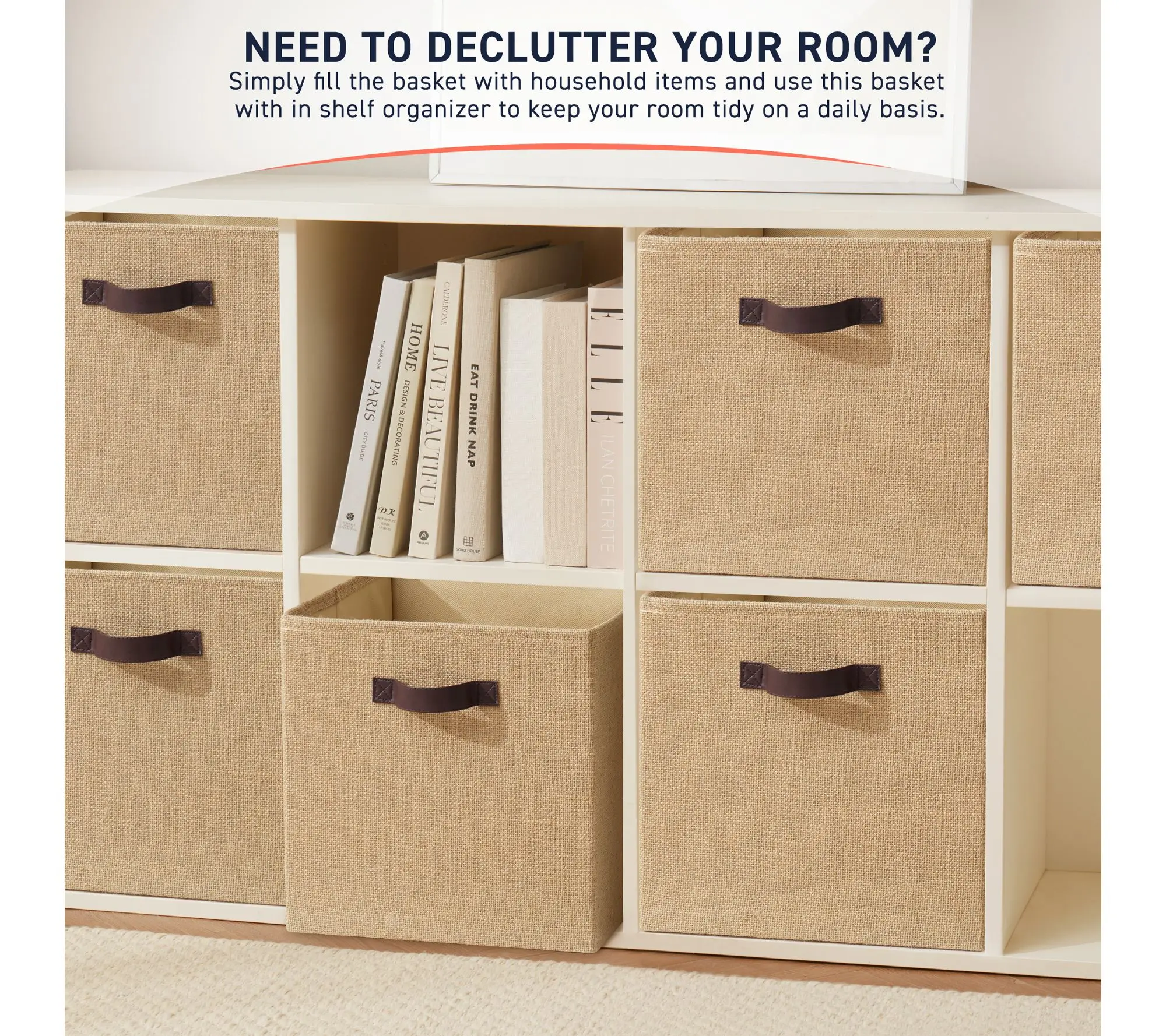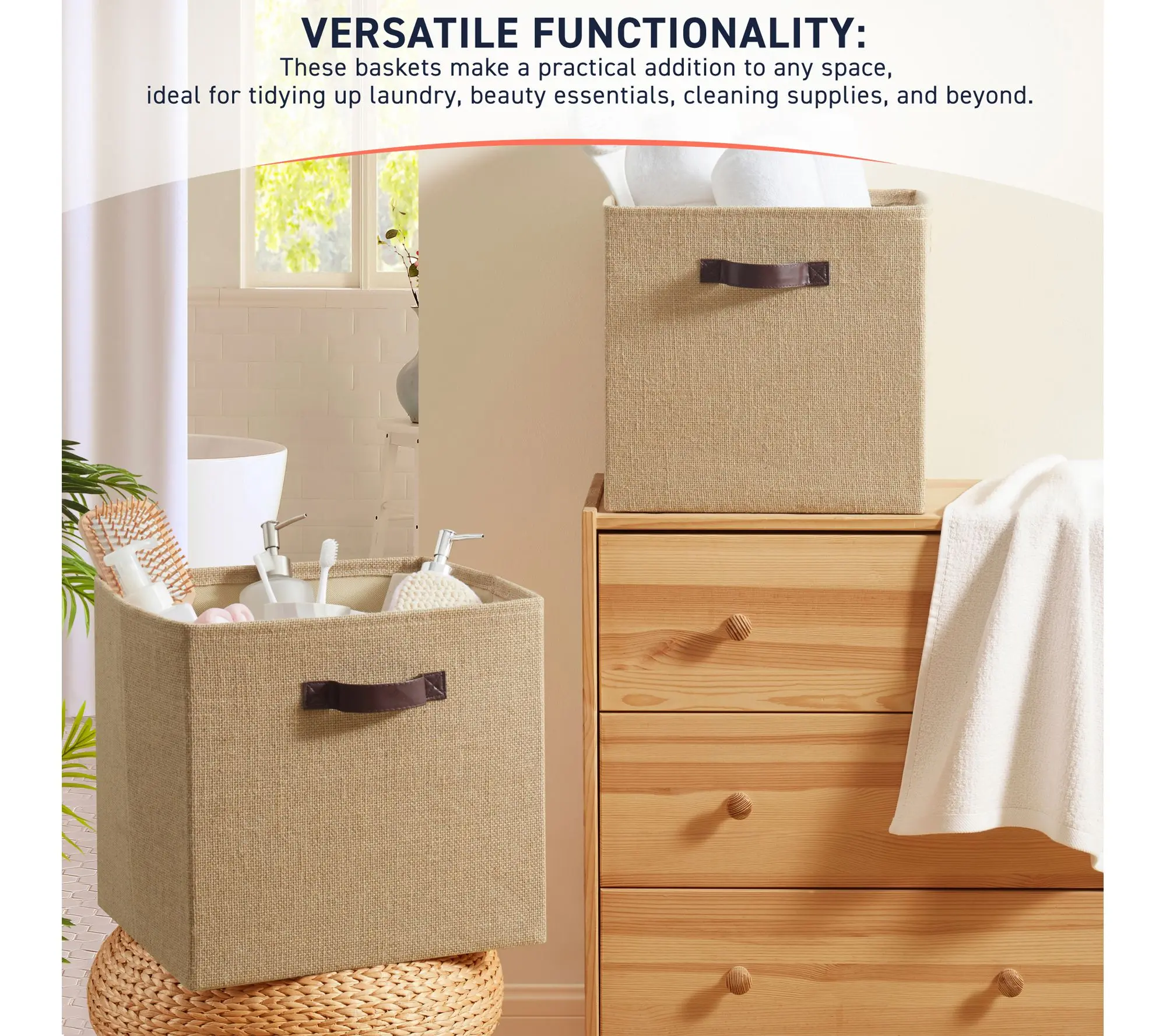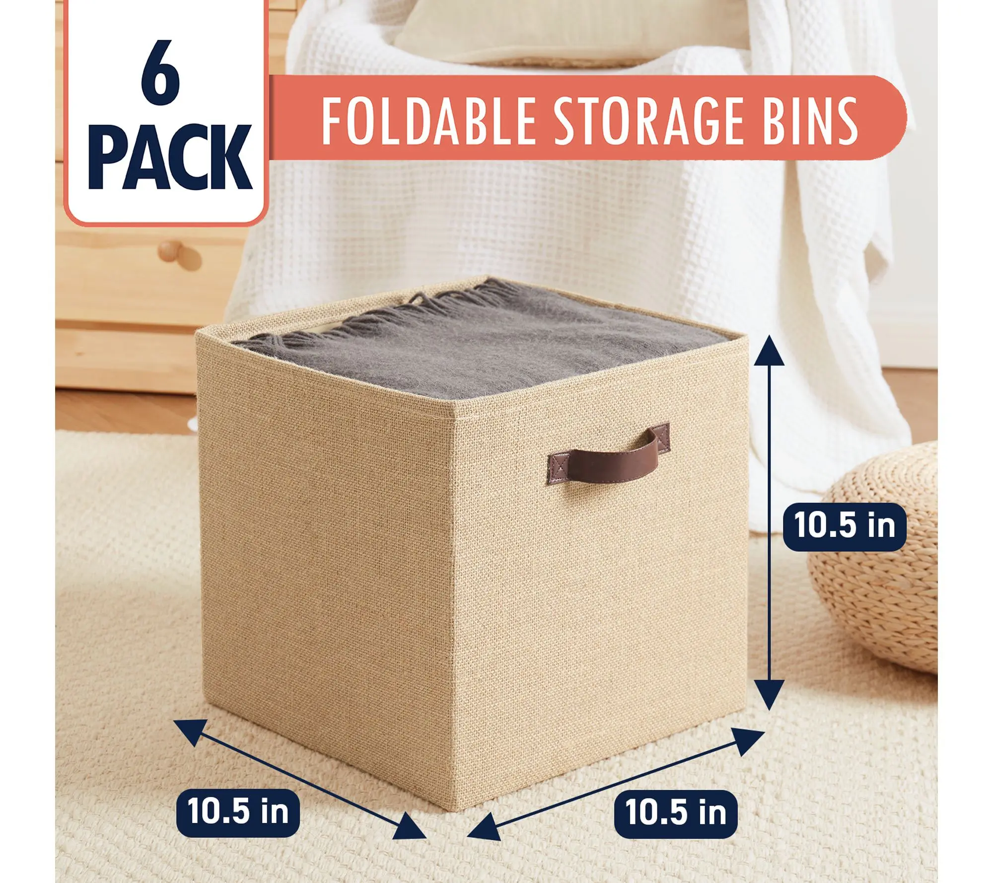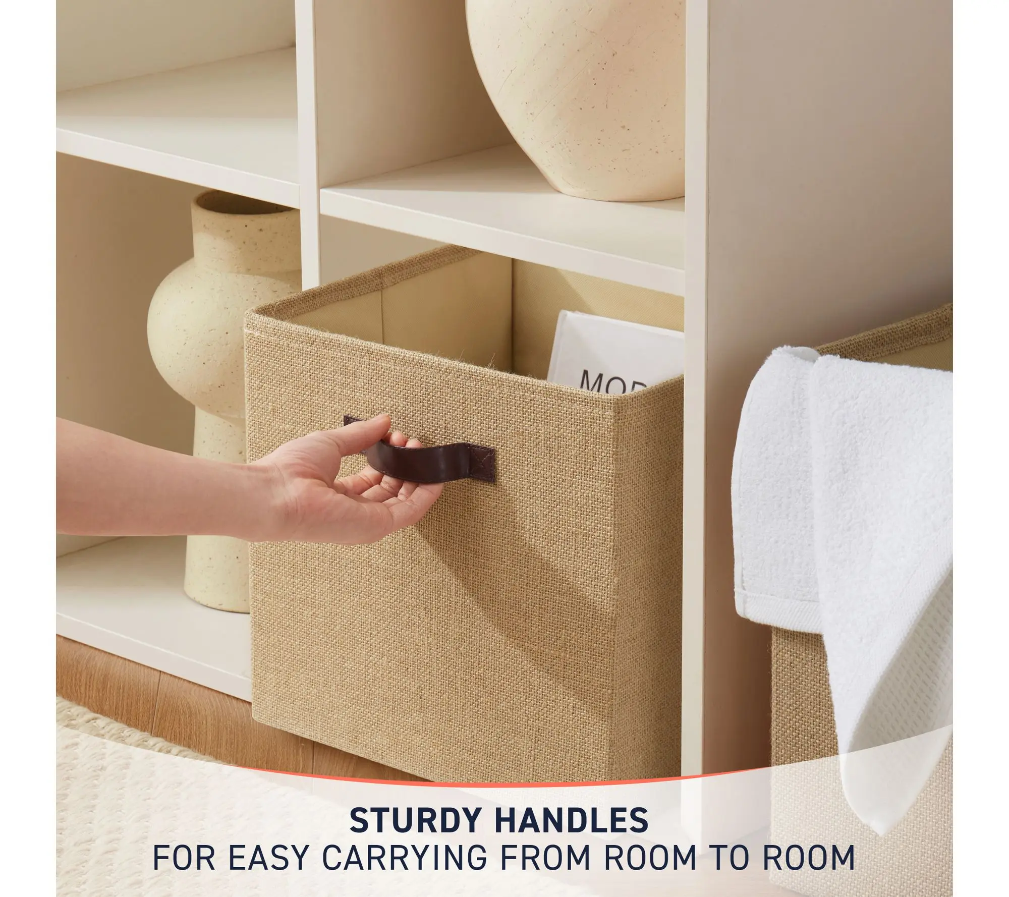 Whether you're organizing books, toys, or office supplies, these fabric baskets bring both style and structure to your living room, bedroom, or closet. Featuring durable jute fabric and faux leather handles, each storage cube fits easily into most organizers -- making tidying up a seamless and attractive part of your everyday routine. From Ornavo Home.
