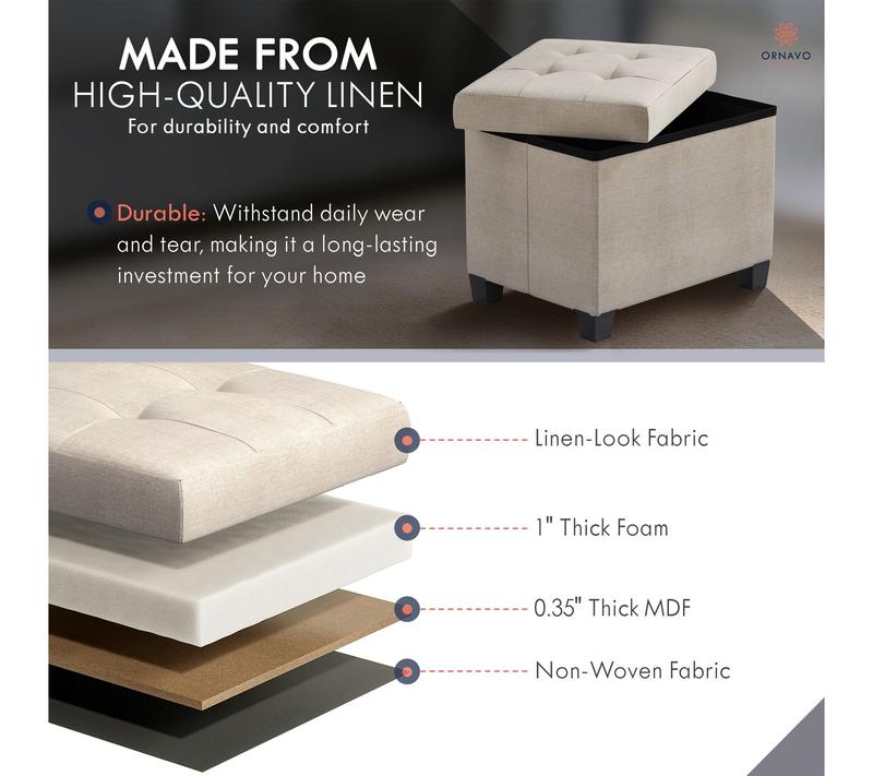 Ornavo Home Small Foldable Tufted Linen Storage Ottoman
