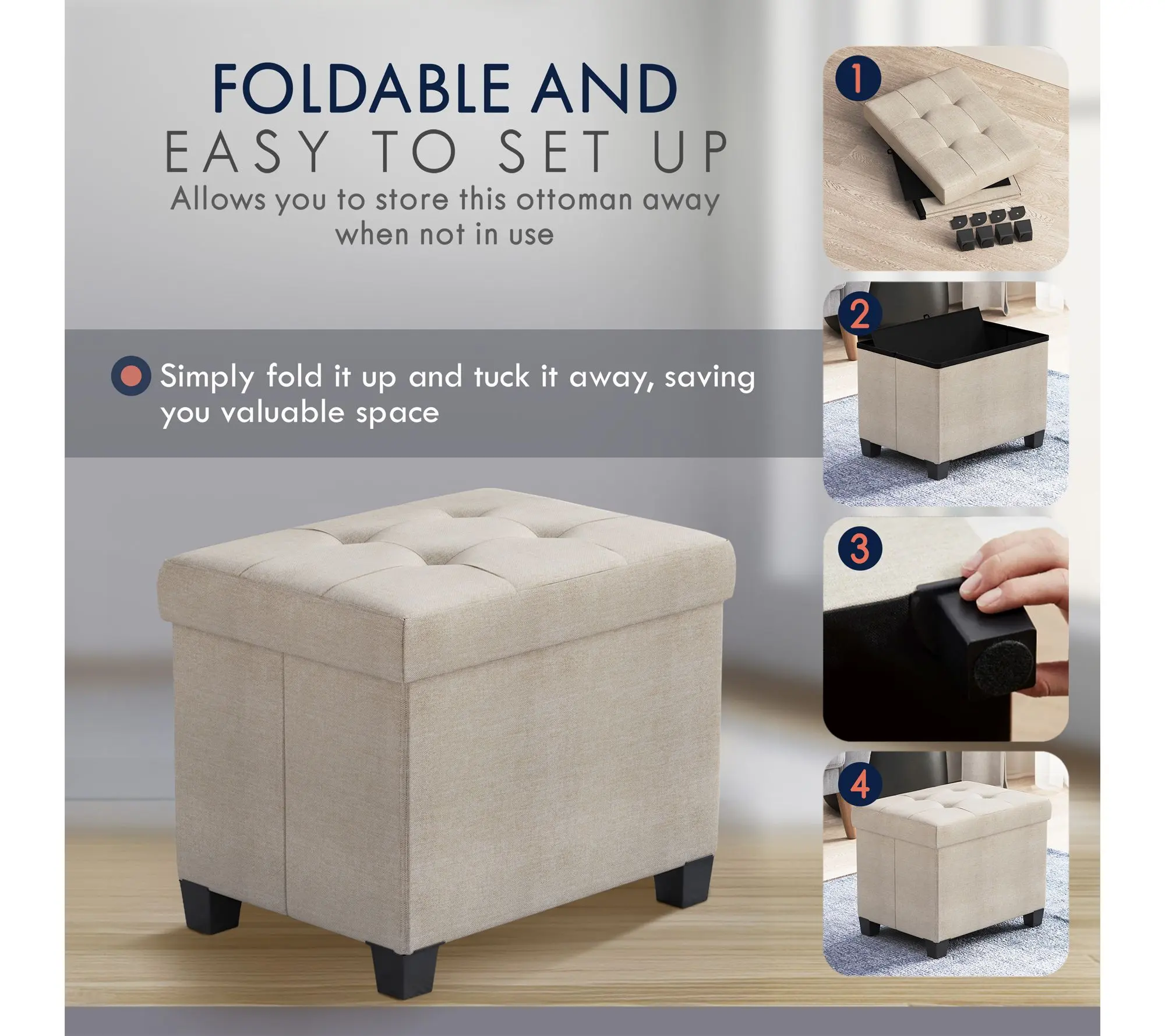 Very easy to assemble - no tools needed. Perfect little ottoman to prop my feet up.