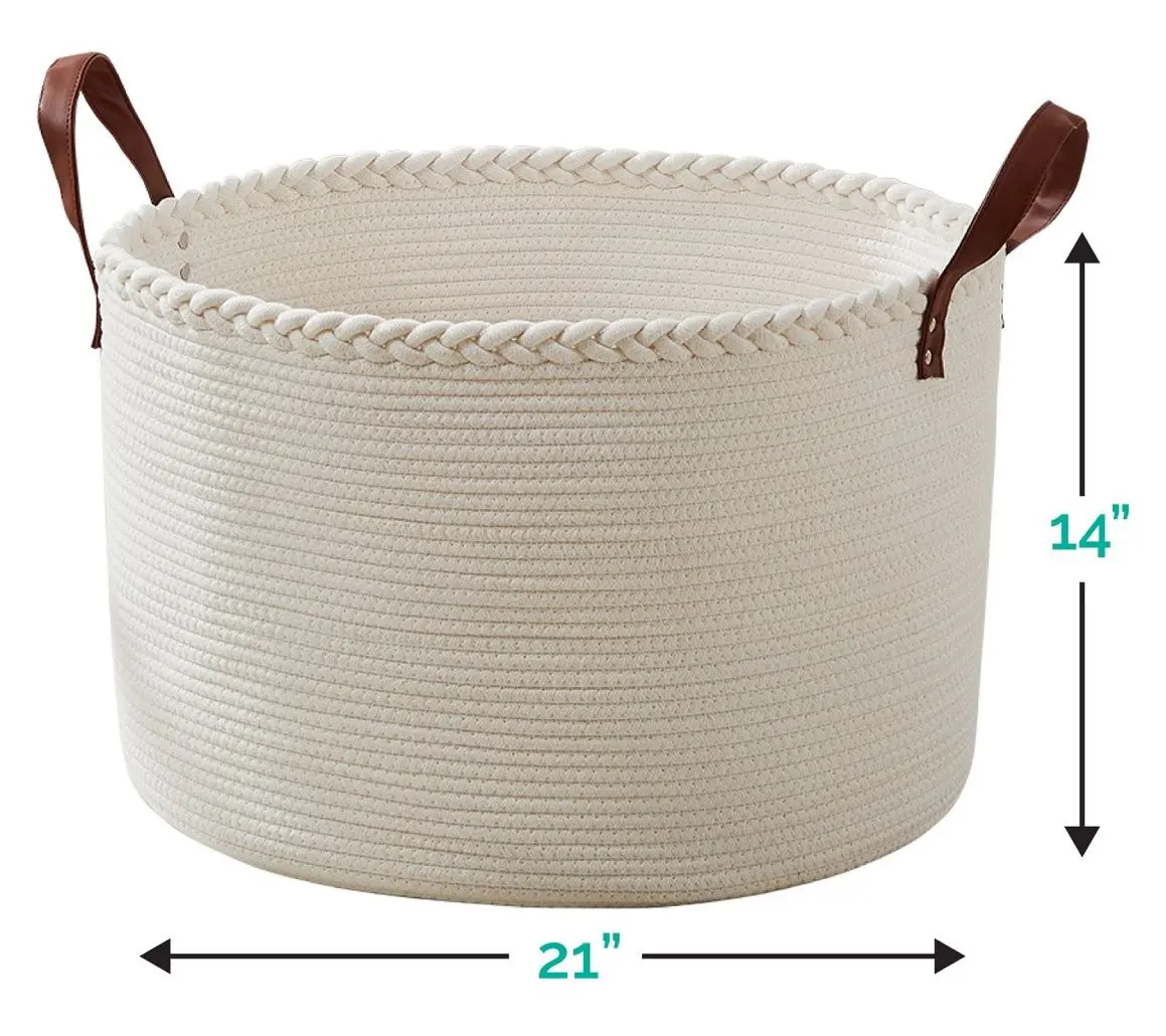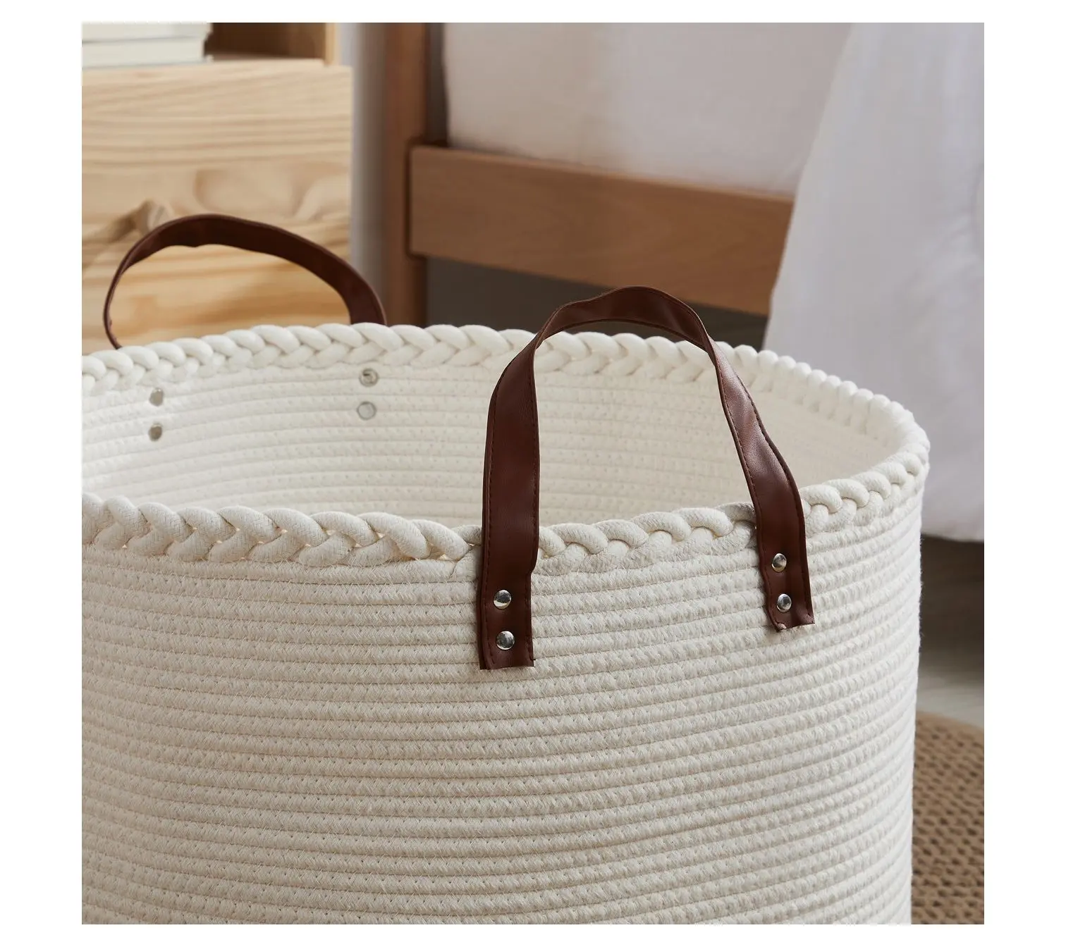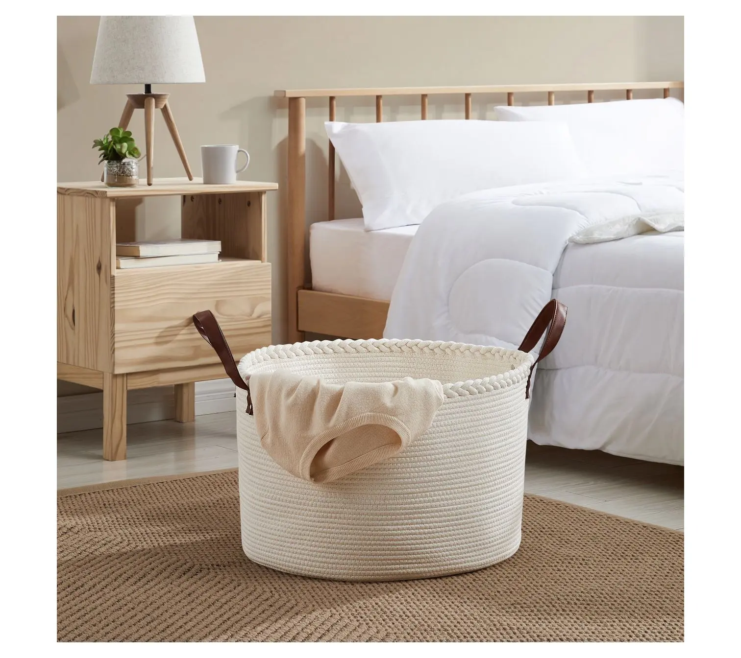 5. Ornavo Home XL Rope Laundry Storage Basket w/ Leather Handles