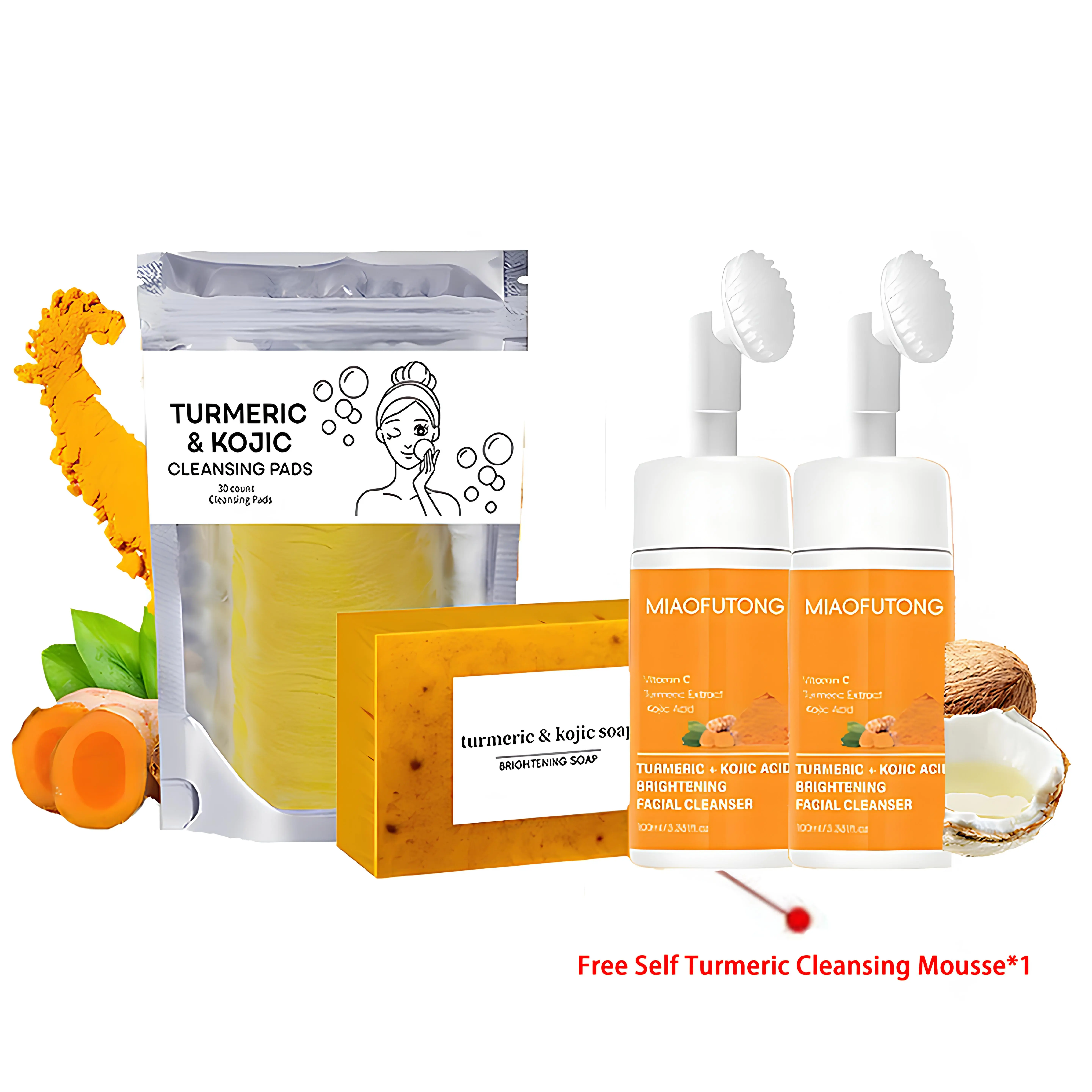 This four-piece set includes 2PCS Turmeric Cleansing Mousse, Turmeric Tablets, Turmeric Soap, and Facial Cleansing Skincare. Perfect for facial cleansing, this set offers a comprehensive skincare routine. 🌸