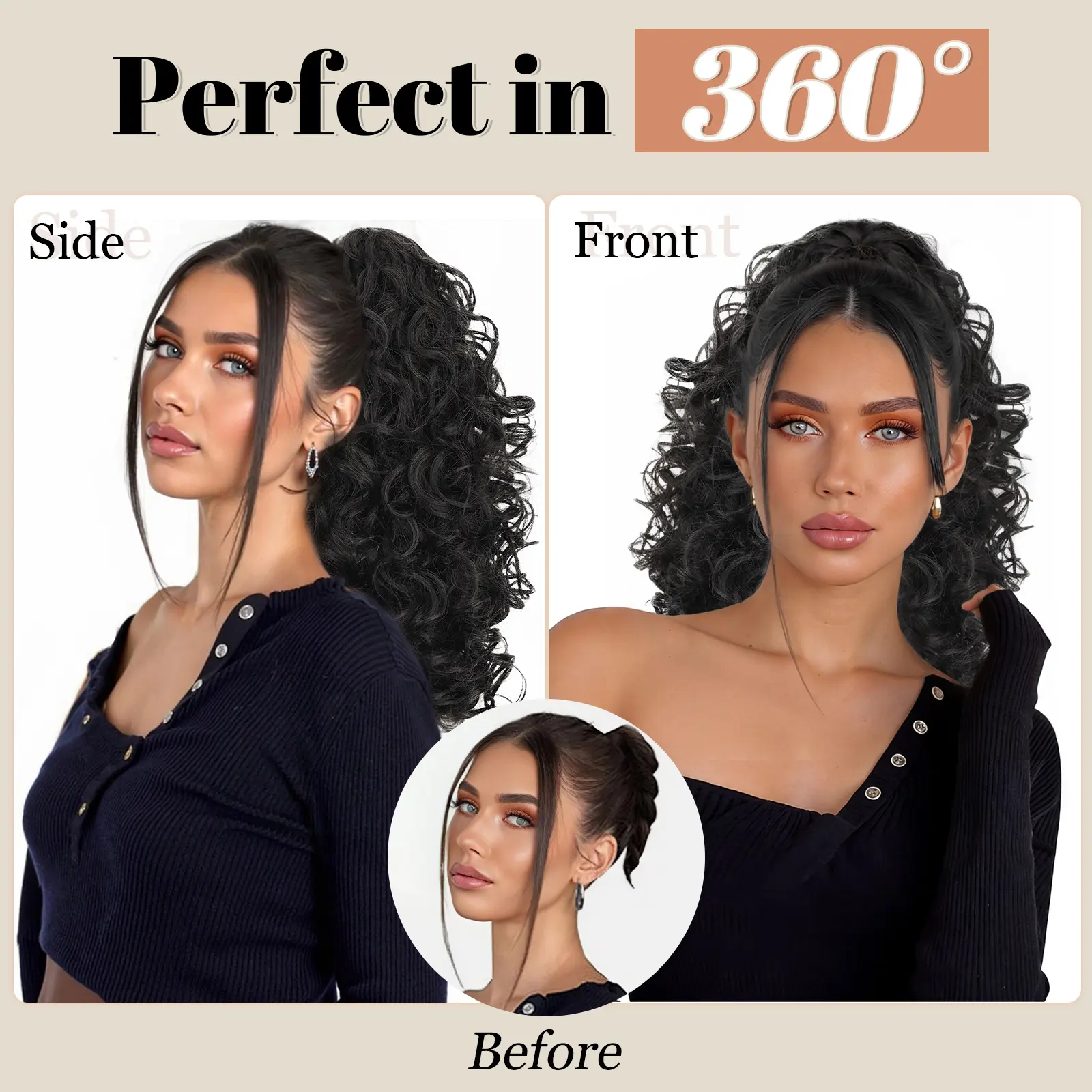 ·[Instant Hairstyle Change] This is the easiest and quickest way to change your hairstyle. You just need to open the claw comb at the top of the ponytail and clip this ponytail extension over your own ponytail. Just one step and you will have a new look!