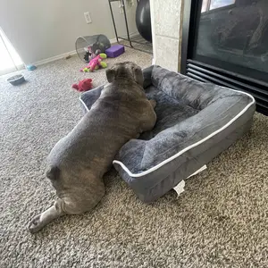 For the price, it’s a great bed! My doggos love it so much. Love the bolsters on the sides so they can lay their head on them. The pad itself is on the thinner side, so I’ll be adding some extra padding to it. Overall, the boys are pretty satisfied.