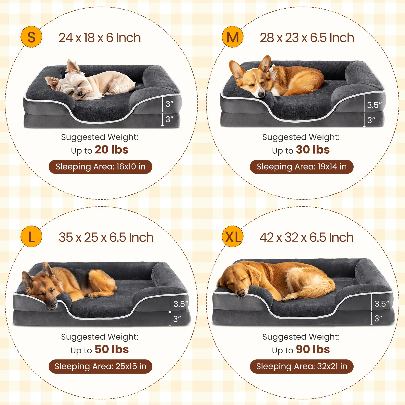 ·BOLSTERED SOFA BED DESIGN: Featuring 3-sided bolsters, this dog bed offers extra neck and head support, fostering a restful slumber for your pet. The surrounding bolsters invite your dog to curl up and enjoy a cozy night's sleep.