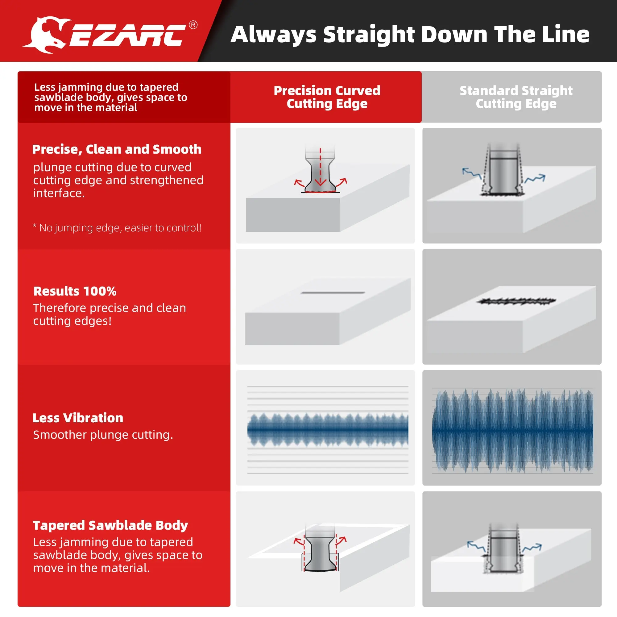 This oscillating saw blade's innovative curved edge design delivers optimal cutting angles throughout the oscillation process, leading to greater efficiency and accuracy. Moreover, the arc edge design effectively reduces vibration and enhances stability during use.