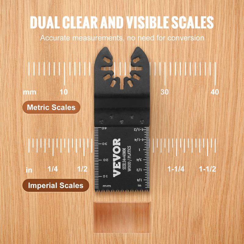 • Unmatched Precision and Stability: The oscillating saw blades come with length markings on both sides, one side in inches and the other side in centimeters. Say goodbye to conversion headaches as you enjoy precise measurements, allowing you to achieve accurate, smoother and faster cutting. Widely applicable for home remodeling , window installation, cut nail impregnated wood, door frames, flooring work, trimming, and other adjustment works.