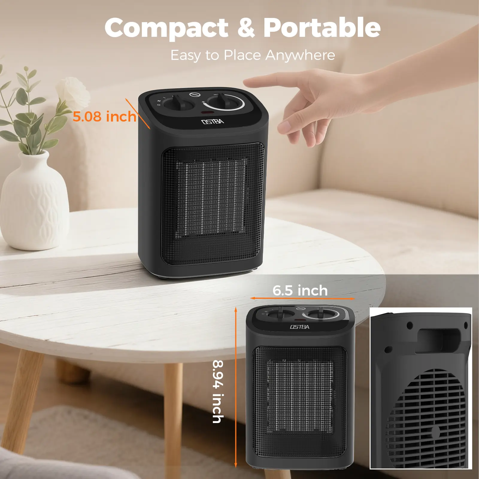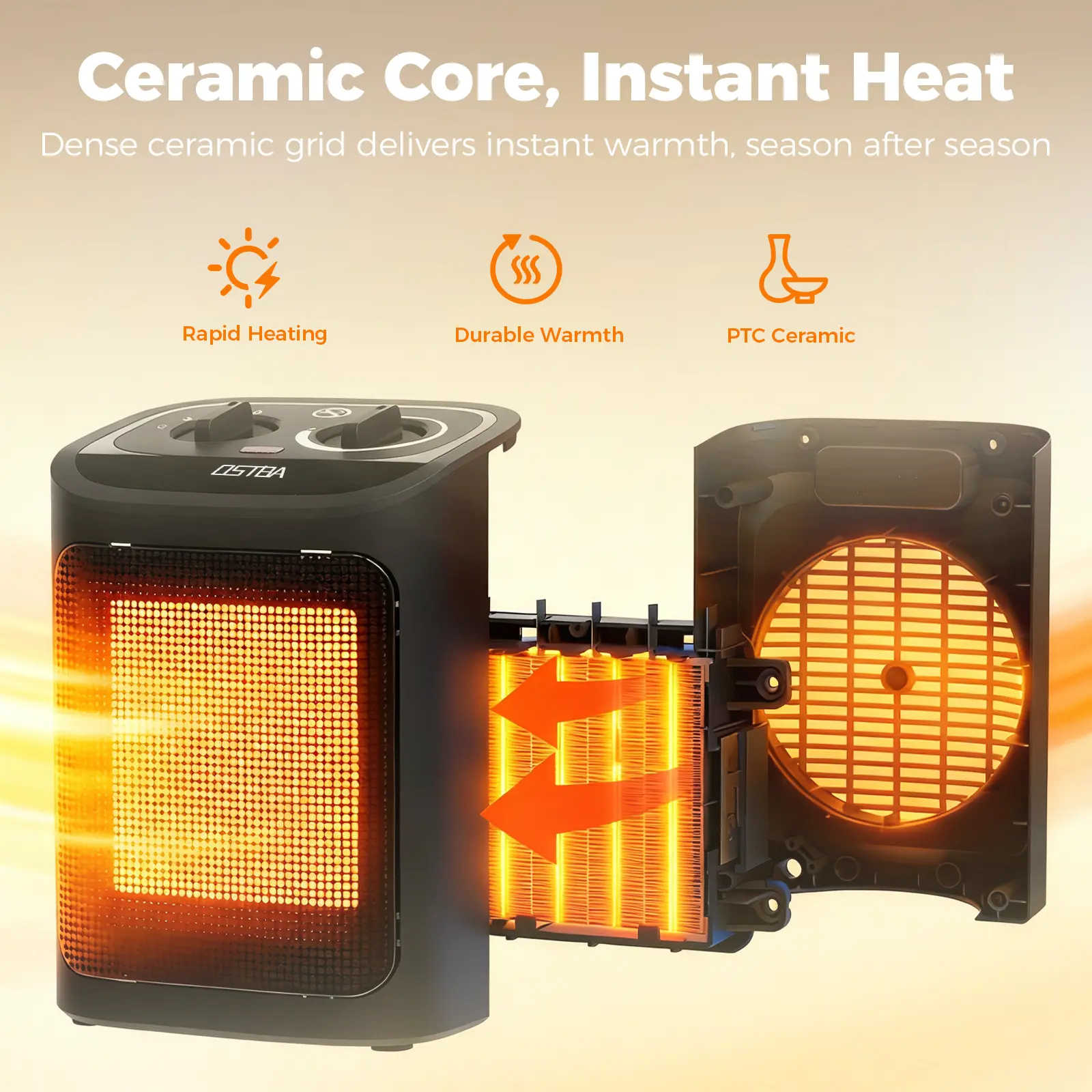 Powered by high-efficiency PTC ceramic technology, this heater kicks out toasty warmth the second you turn it on. Plug it into any standard 120V outlet, and your small to medium space (bedroom, office, dorm) will feel like a cozy haven in minutes—perfect for cold mornings, late-night work sessions, or lazy weekends.