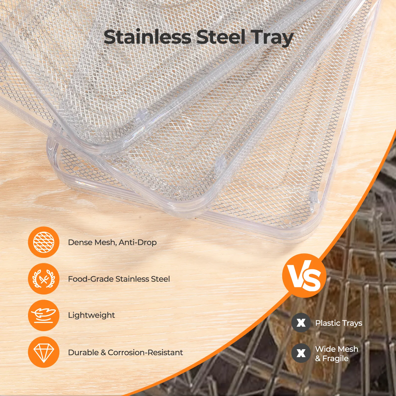 ·Embedded Stainless Steel Trays:Equipped with 5 embedded stainless steel trays, this food dehydrator provides a durable, safe, and rust-resistant surface for drying fruits, vegetables, herbs, jerky, or mushrooms