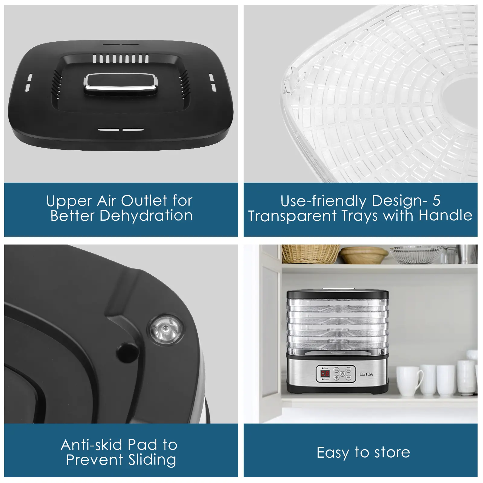 ·Compact and Clean: The herbs dehydrator machine is a great space-saving option, 5 BPA-Free trays are stacked on top of one another, only taking up a small amount of space on your countertop, and are easy to store. Dishwasher safe trays and stainless steel is easy to clean with a damp cloth or brush/sponge