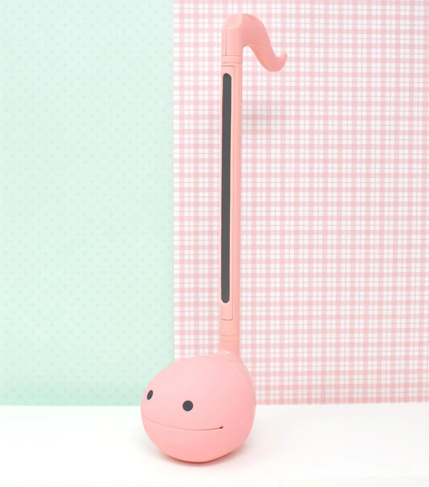 An Otamatone edition in delicious colors that look like sweets. Interchange heads to boost cuteness to new levels! The gingham check package design is pure nostalgy! Functions and size are similar to the standard Otamatone.