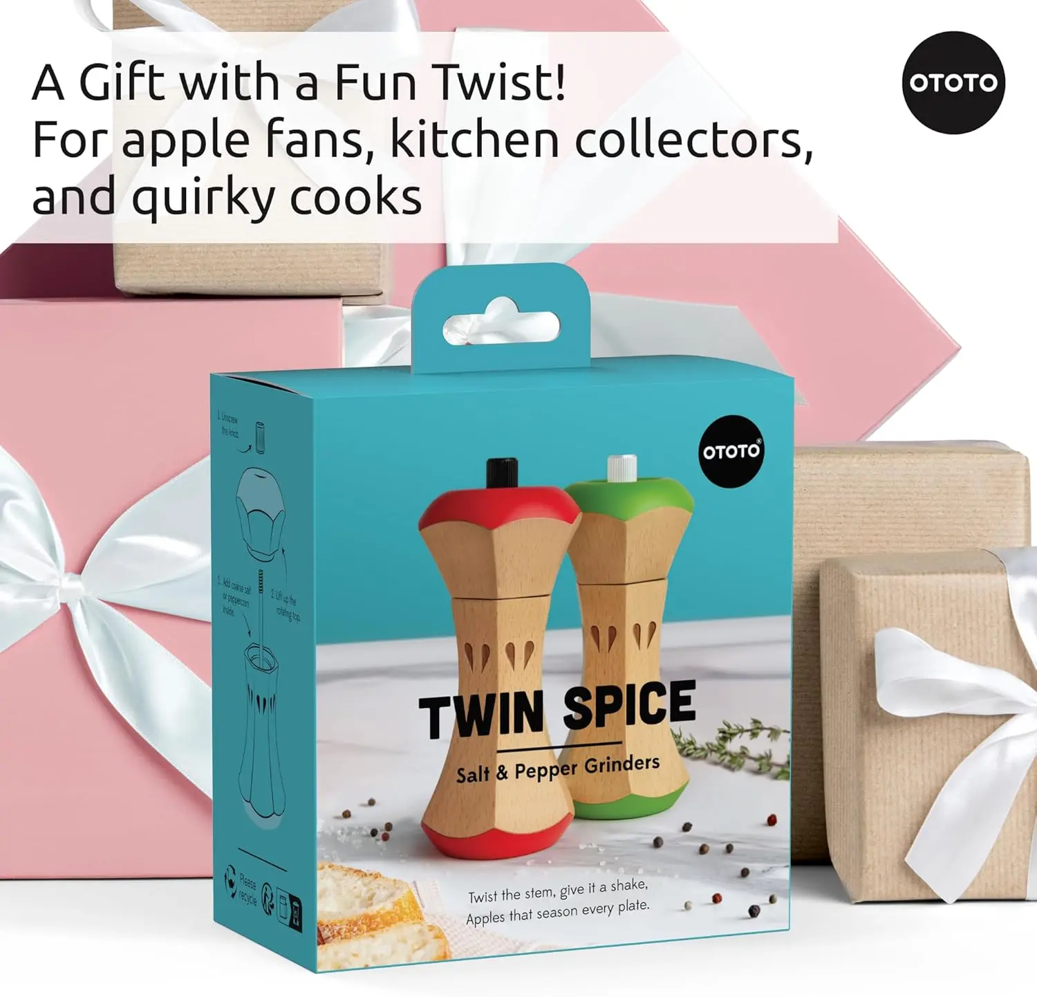 OTOTO Twin Spice Salt and Pepper Grinder Set - Unique Apple Design Manual Spice Grinder | Adjustable Coarseness Mill | Unique Housewarming Gift & Apple Lovers Gift | TikTok Must-Have | Funky Kitchen Supplies | Kitchen Accessories