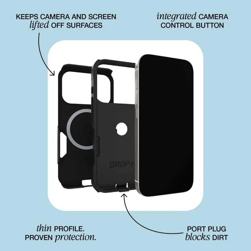 ·Get moving with Commuter Series, the slim protective iPhone 17 case that keeps your phone safe from drops. 3X military standard drop defenses (810G-516.6) and grippy sides combine to ensure you keep going strong. Built-in magnets click to MagSafe accessories, and the case gives you full access to Camera Control.