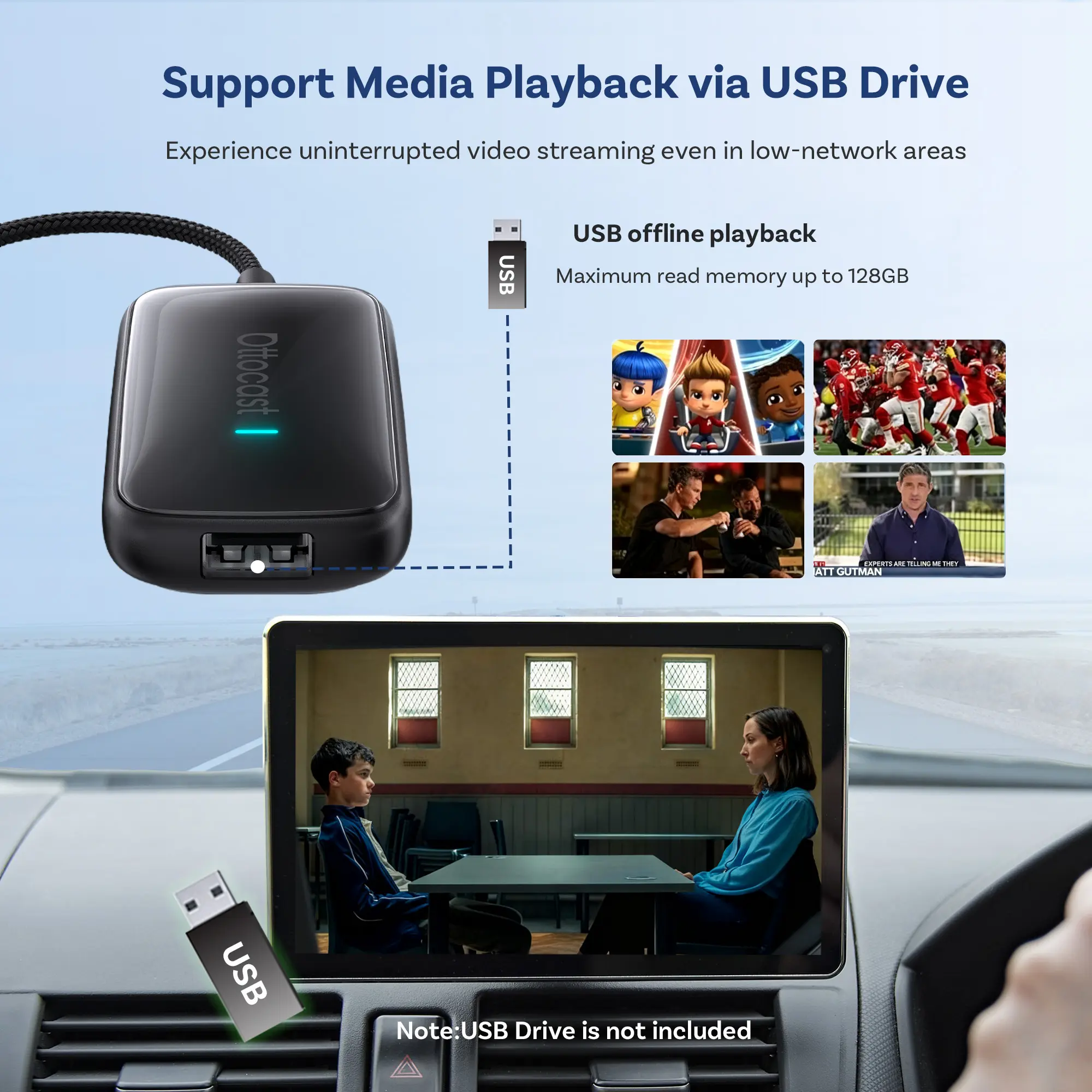 4GB RAM+32GB ROM, Android Auto, Car Video Player, CarPlay, Support 128GB USB drive offline playback