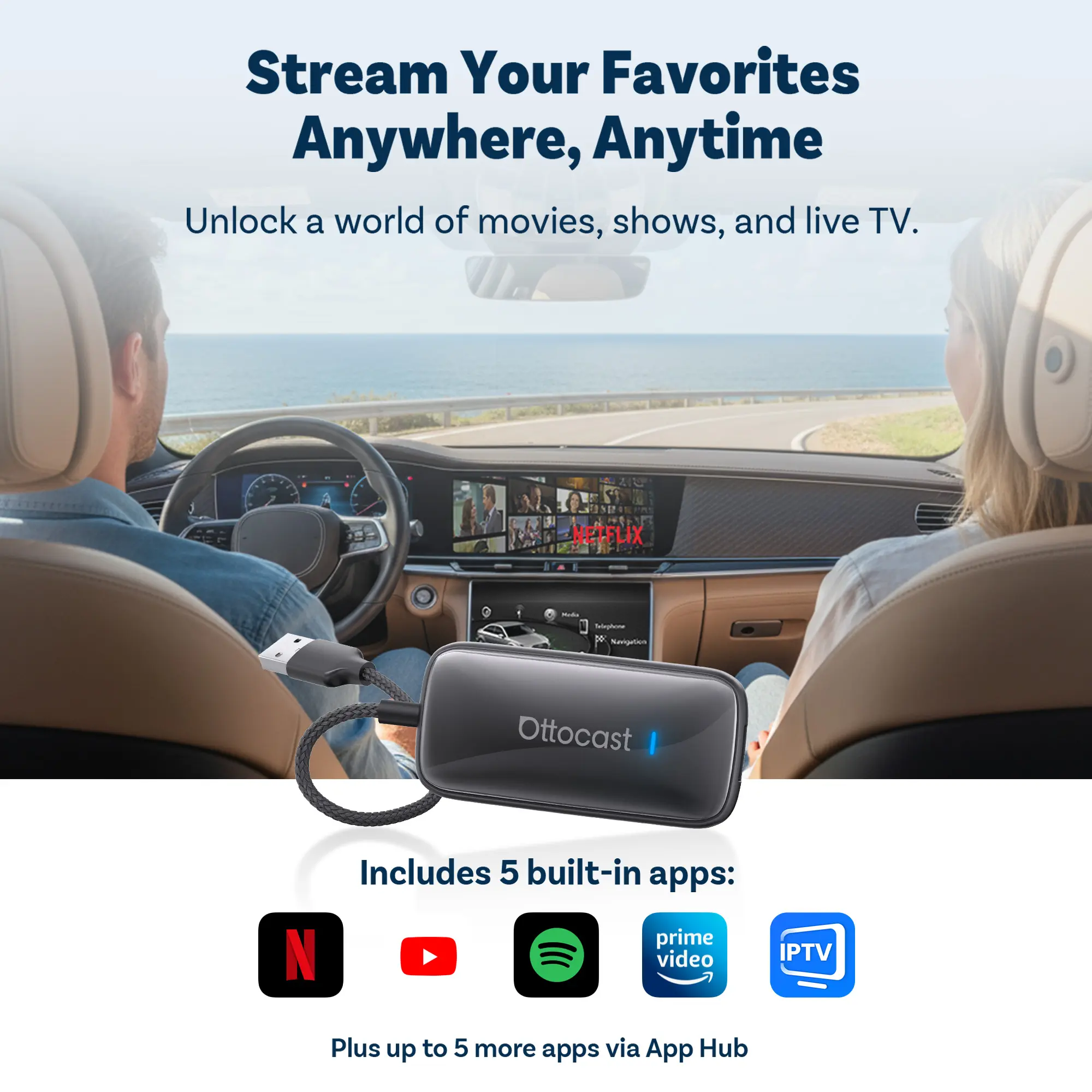 Video Player Built-in Netflix/YouTube/IPTV, Plug & Play Streaming Device for Car