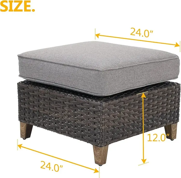 ·Free Combination Set: This outdoor furniture sets of adopts modular design, you can design, feel free to enjoy leisure time from the angle you like. The ottoman with Imitation wood grain feet can be used as a footstool, independent seat, or as a place to place items