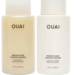 The OUAI Medium Hair Shampoo & Conditioner bundle is packed with strand-loving ingredients like keratin, babassu oil, and coconut oil to deeply hydrate, reduce frizz, and improve shine without weighing you down.