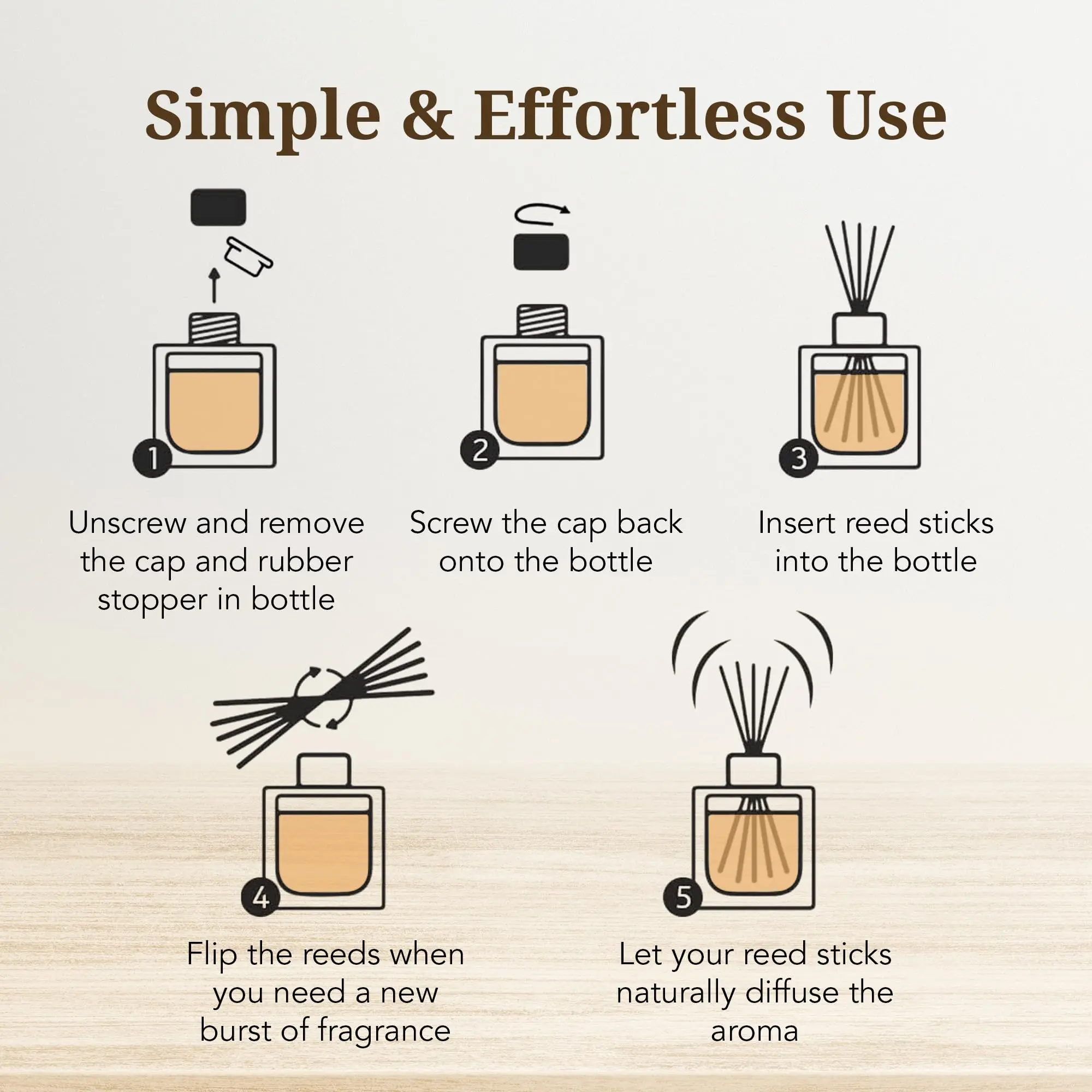 ·Flame-Free, Plug-Free, Hassle-Free - No candles or electricity needed. Simply insert the reeds or room scent sticks into the fragrance diffuser bottle and let the natural essential oils fill your space.