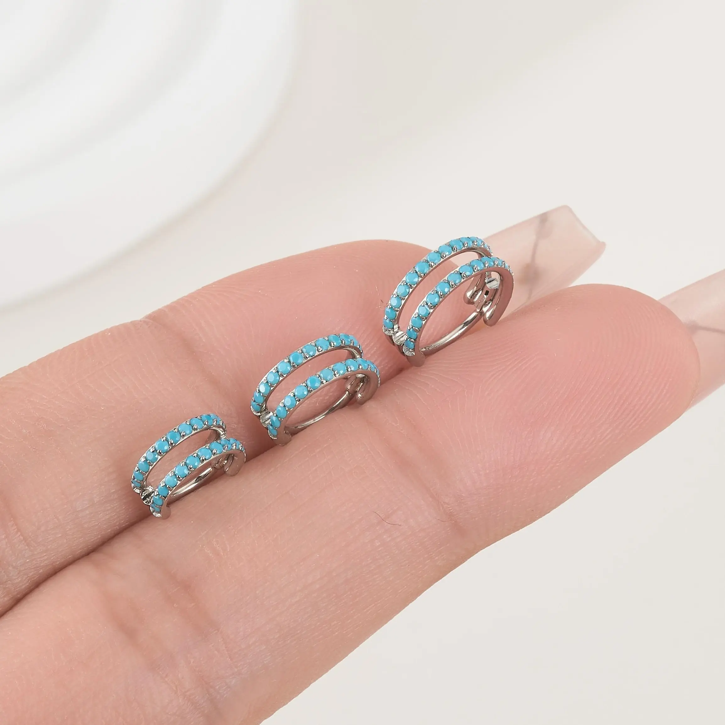 Oufer 20G Aligned Turquoise Hinged Segment Clicker Double Nose Hoop Ring - Elegant Comfortable Design for Subtle Elegance & Bold Look