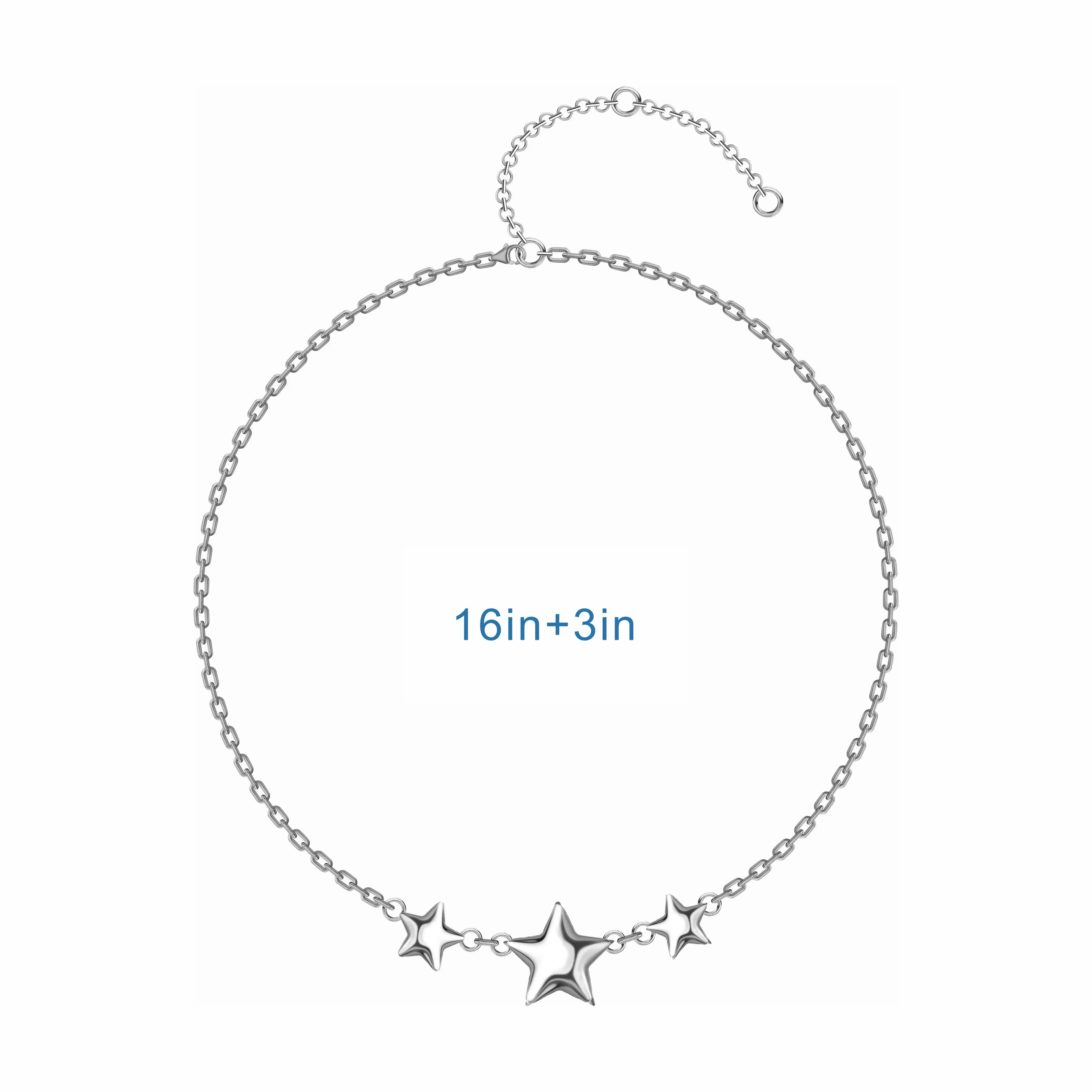 Oufer Bubble Chunky Stars Necklace Stainless Steel Non Tarnish Waterproof Minimalist Chain Necklinphalt for Women Ideal Gift for Valentine's Day